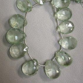 GREEN AMETHYST TEAR DROP STRAND. IT WEIGHTS 138 CTS. EACH BEAD MEASURES BETWEEN 14x10 TO 17x13 MM. INCLUDED