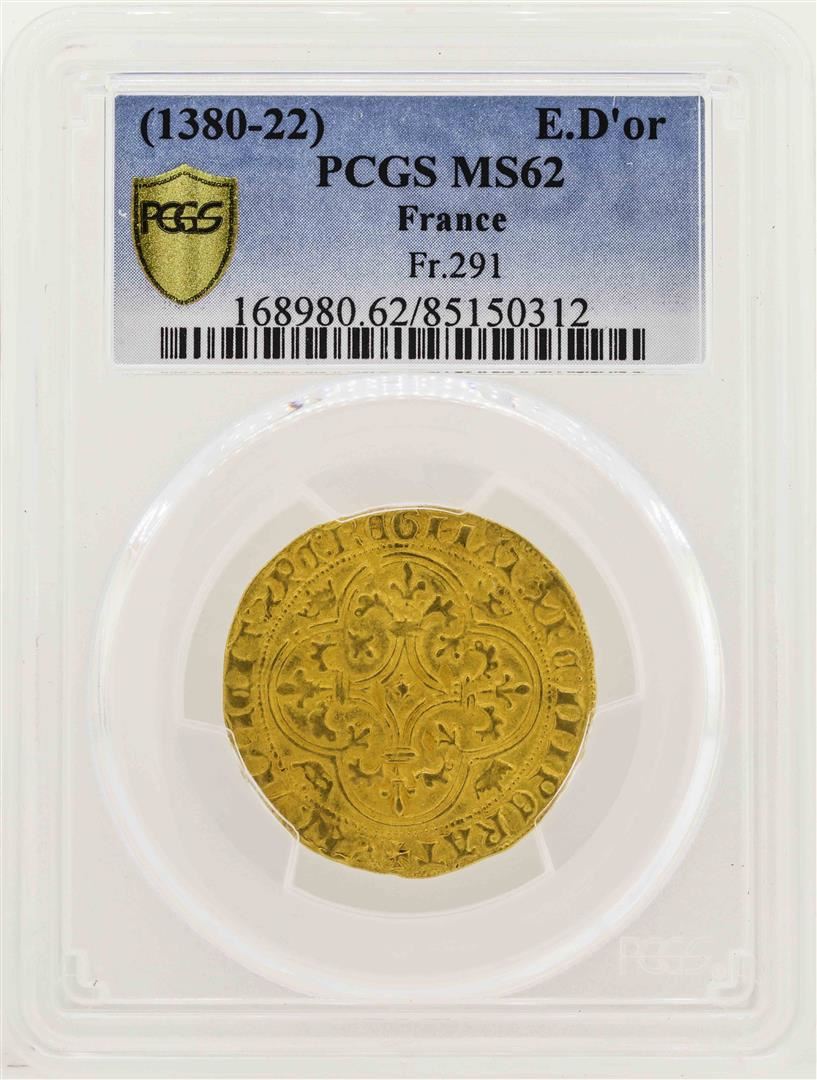 One 1380-1422 France Ecu Gold Coin Fr.291 PCGS MS62. PCGS Graded.