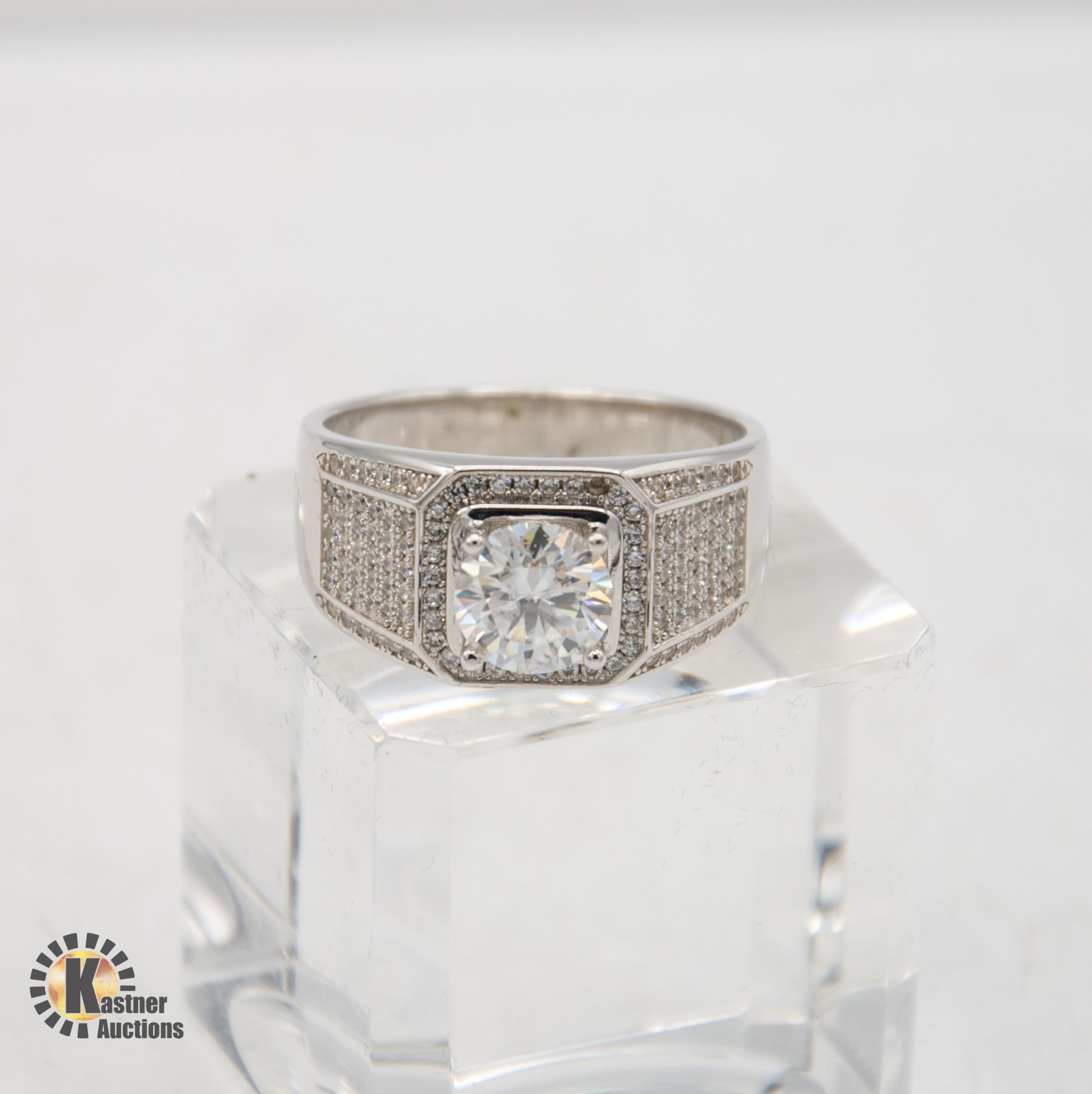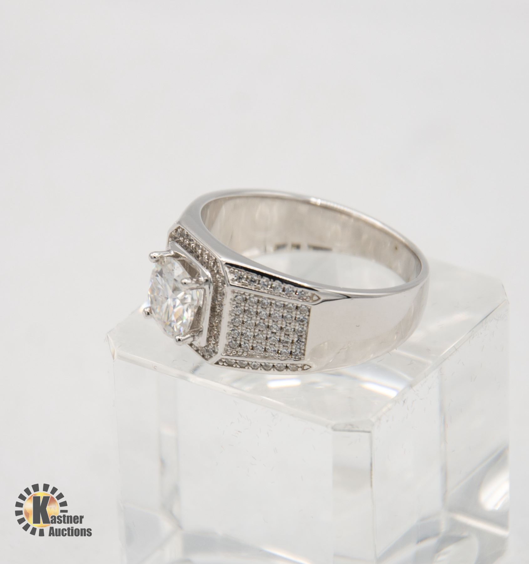 CUT MOISSANITE STONE VVS COLOR SET IN CENTER OF SQUARE HALO WITH MORE SET ON EITHER SHANK THE ROUND BRILLIANT CUT CUBIC ZIRCONIA SET IN 925 SILVER RING SIZE 12 COMES WITH GIFT BOX
