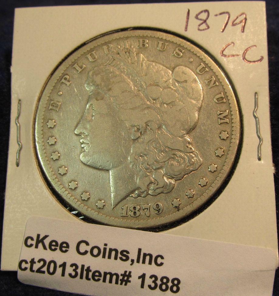 1388. 1879 CC U.S. Morgan Silver Dollar. F-12. Redbook value in VF is $290.00