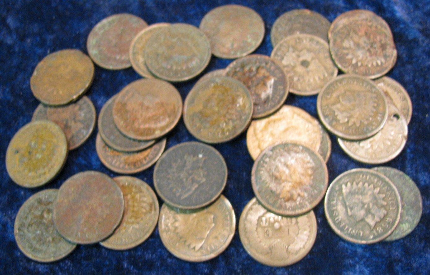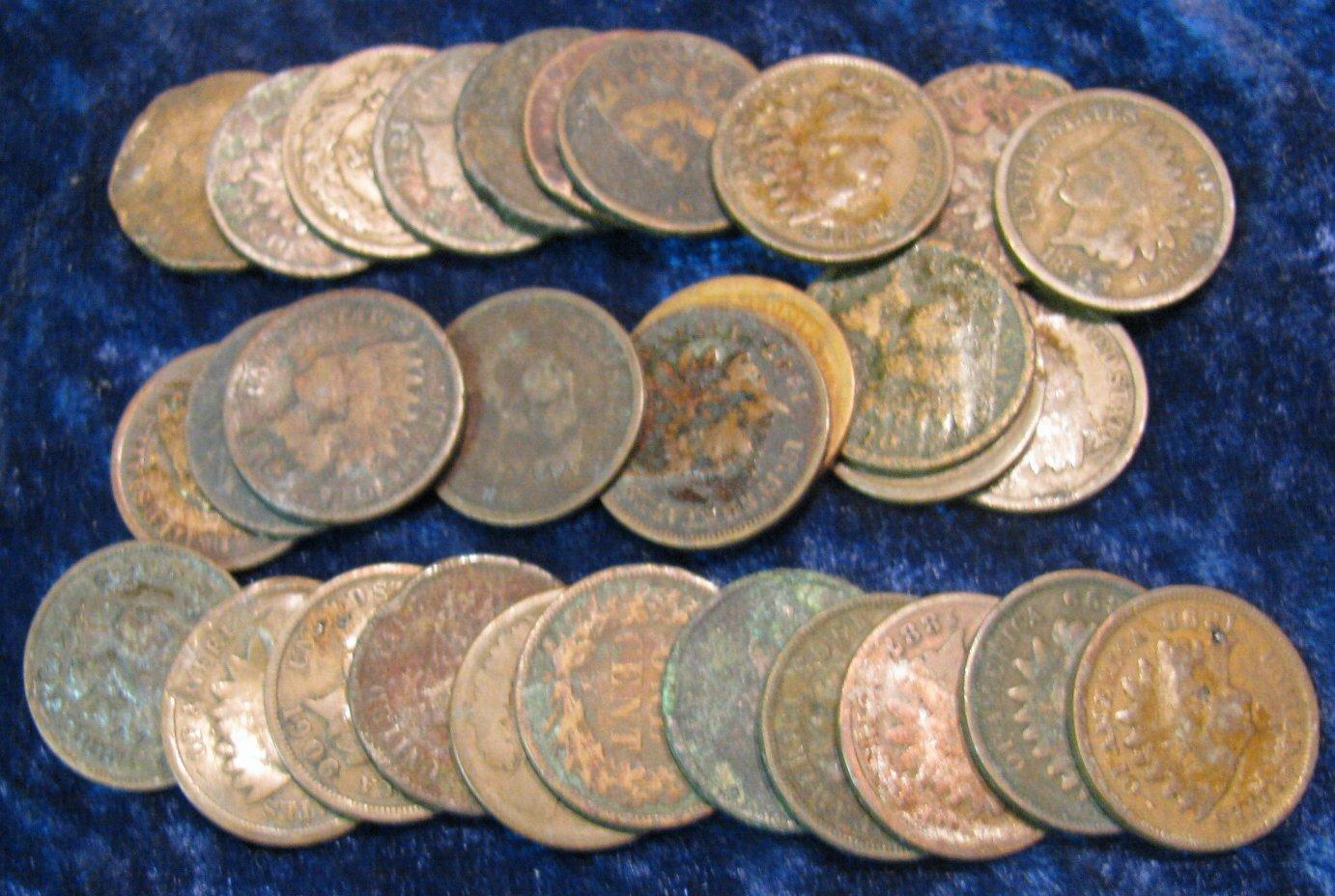 1389. (30) Assorted Indian Head Cents,Culls, Most Need Cleaned Some Damaged.