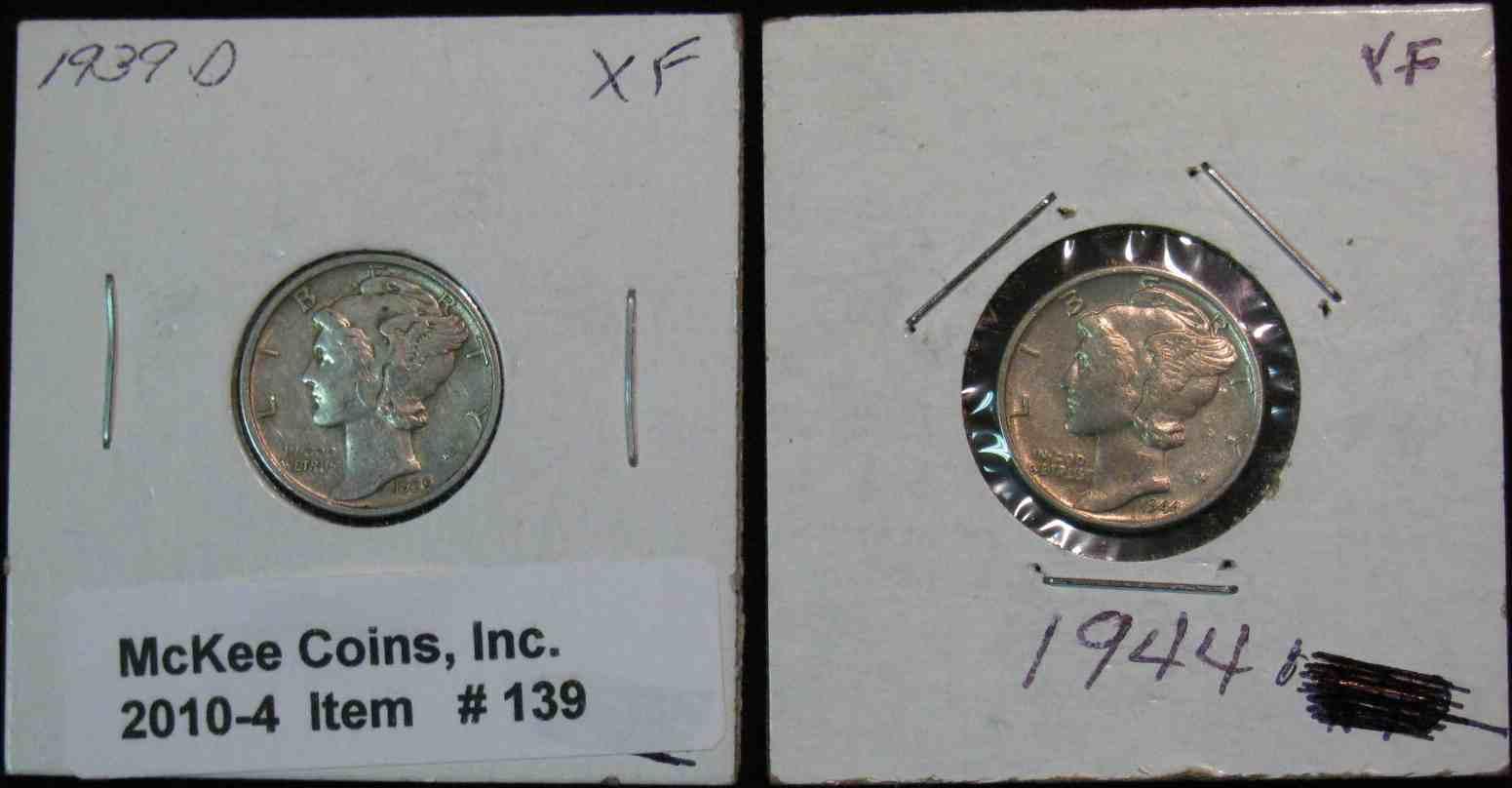 139. 1939 D & 44P Mercury Dime. EF 40.