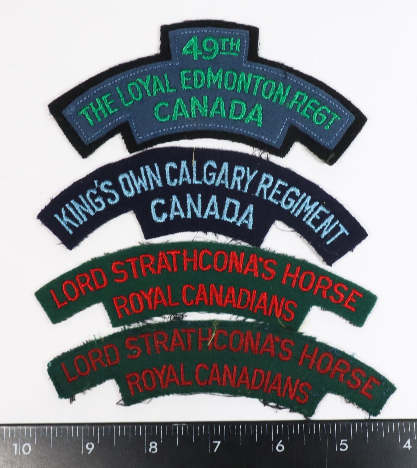 INSIGNIA SHOULDER TITLE KING'S OWN CALGARY REGIMENT CANADA LORD STRATHCONA'S HORSE PAIR LOT OF 4 MILITARY INSIGNIA 1950'S 1960'S