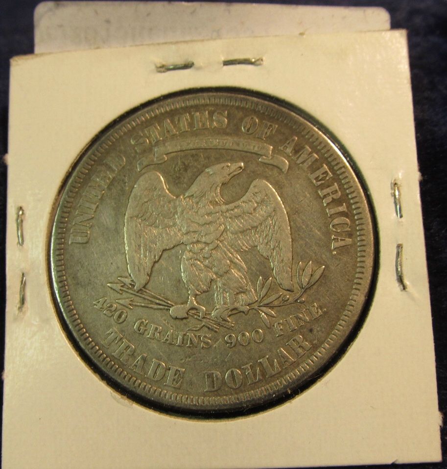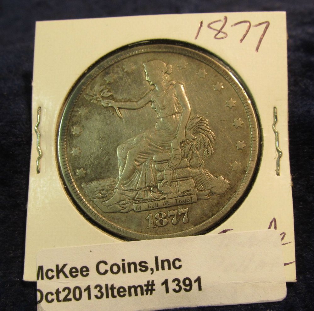 1391. 1877 P U.S. Trade Dollar. VF 20. Redbook value $165.00.