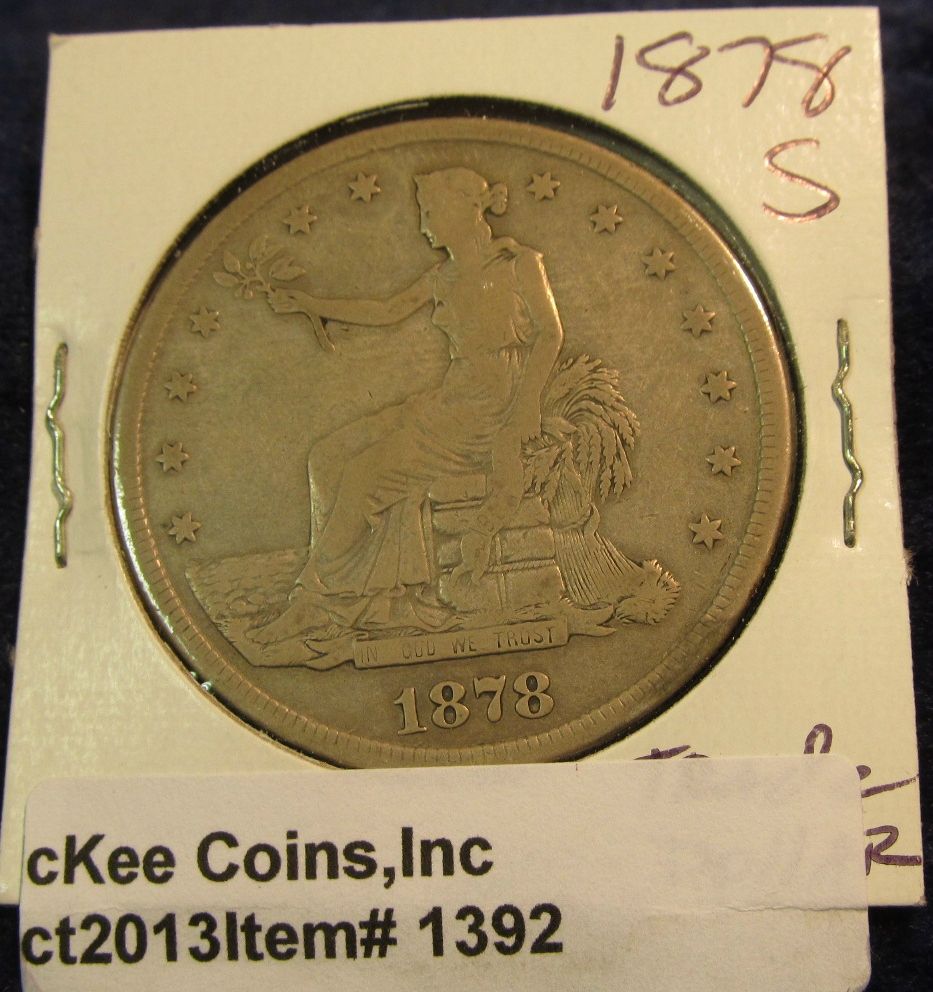 1392. 1878 S U.S. Trade Dollar. VG-8. Redbook value $125.00.