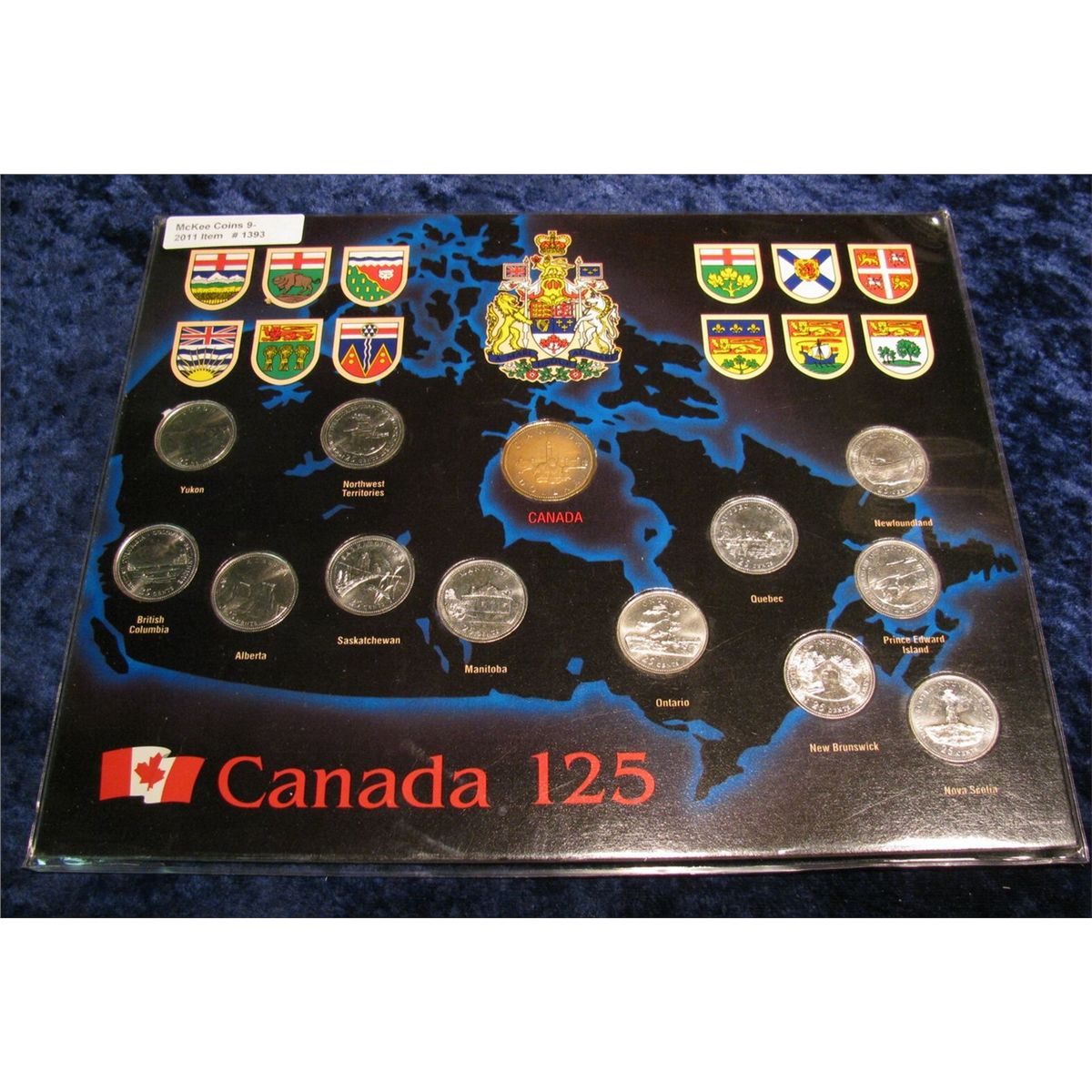 1393. 1867-1992 Canada 125th Anniversary Set. Gem BU. In special holder. Includes 12 Provincial Quarters and Dollar Coin.