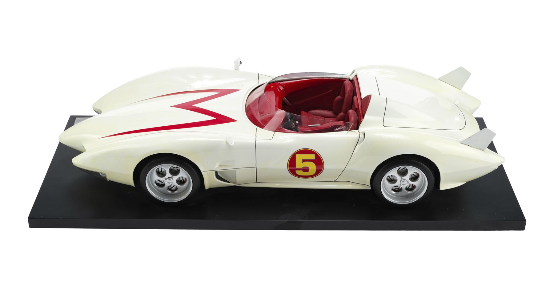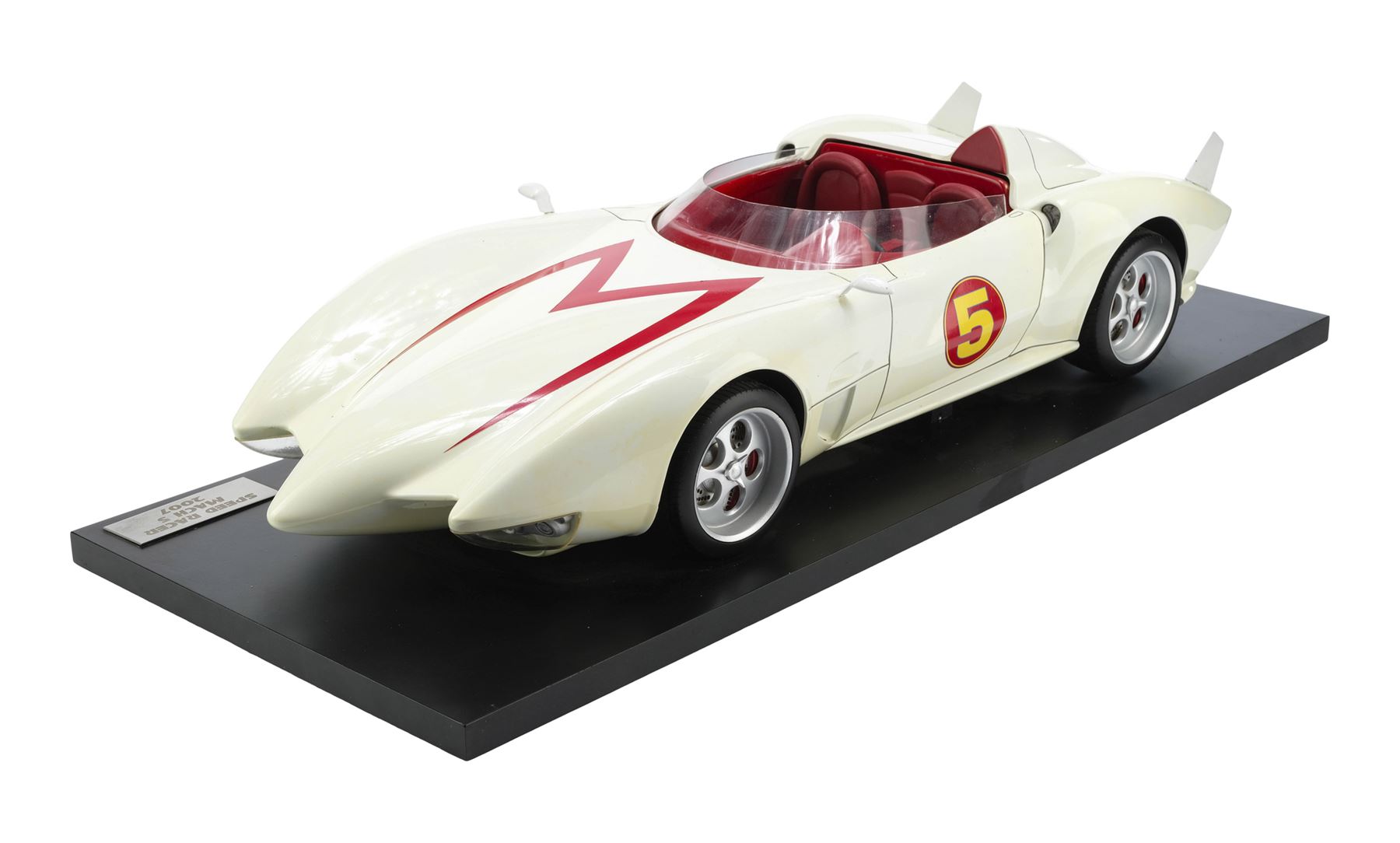 SPEED RACER (2008) - Mach 5 Model Miniature Crew Gift - A Mach 5 model miniature crew gift from the production of the Wachowskis' Speed Racer. Speed Racer (Emile Hirsch) raced his signature high-tech automobile, the Mach 5, against Racer X (Matthew Fox).