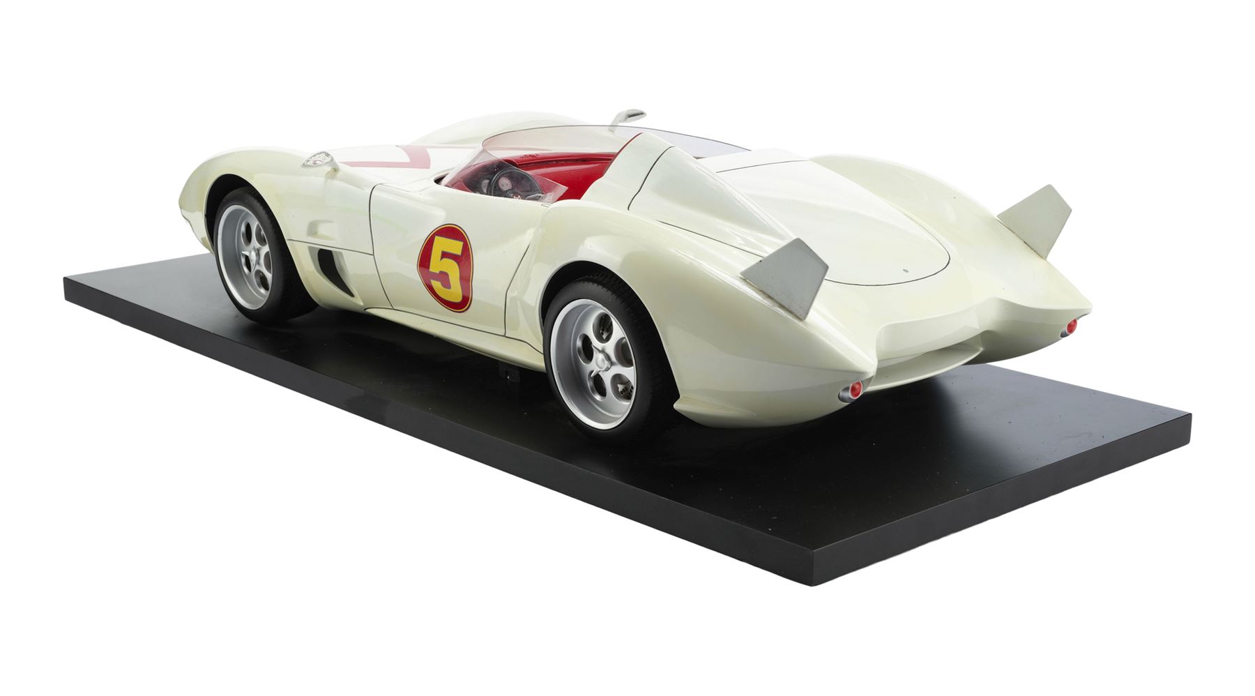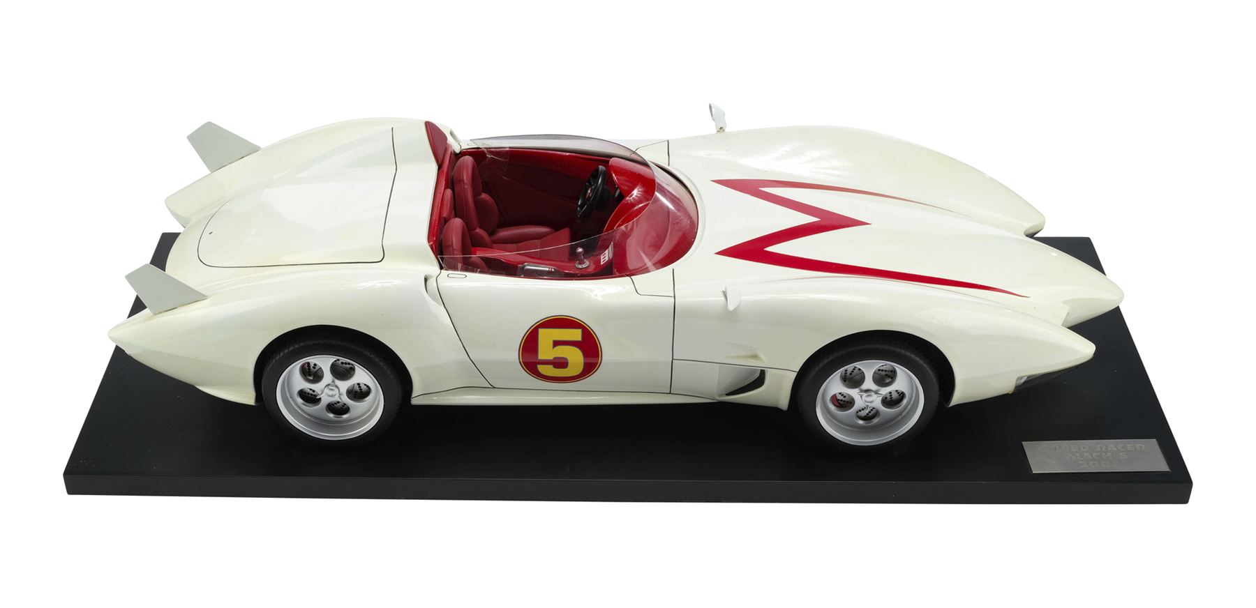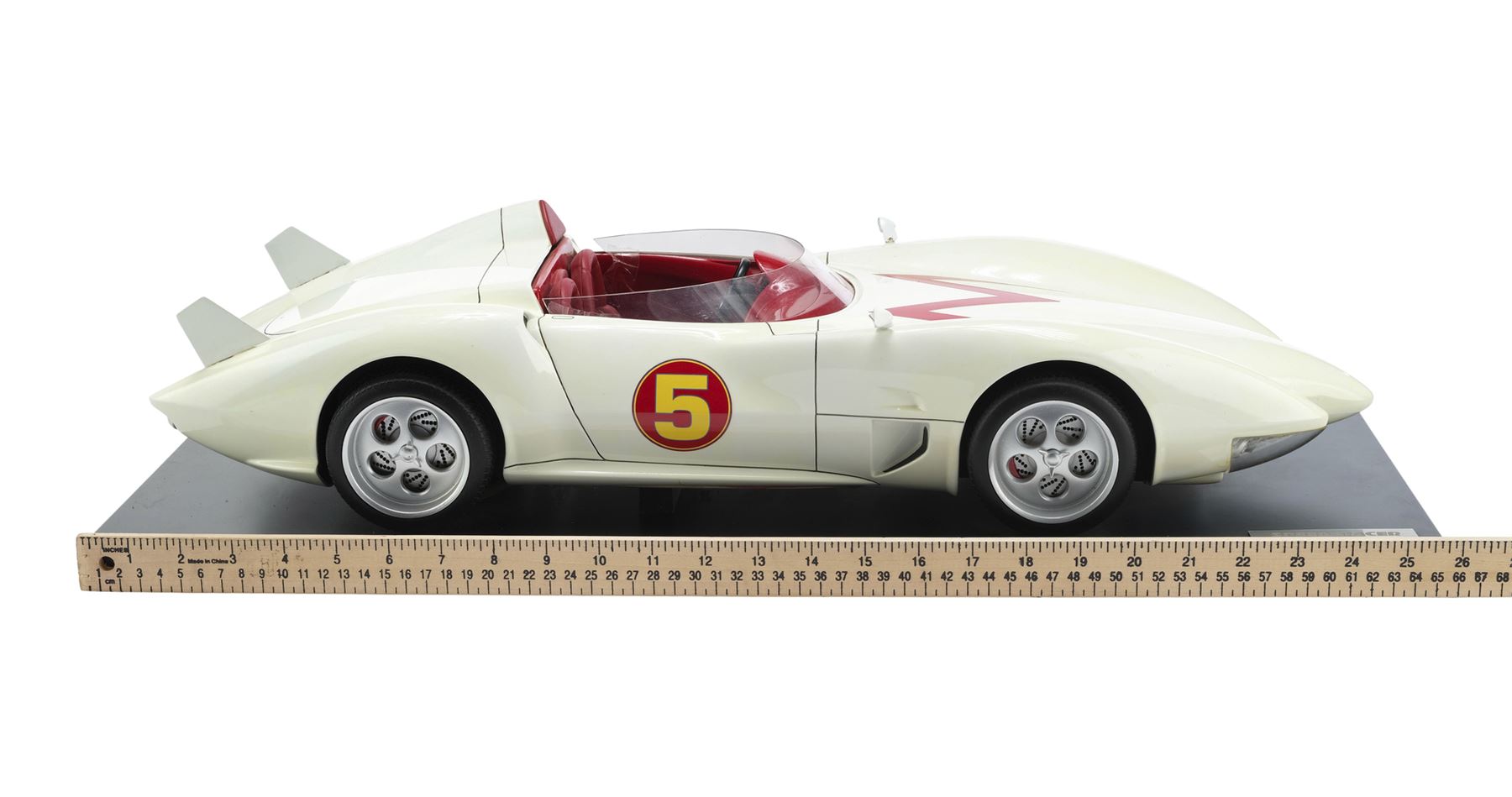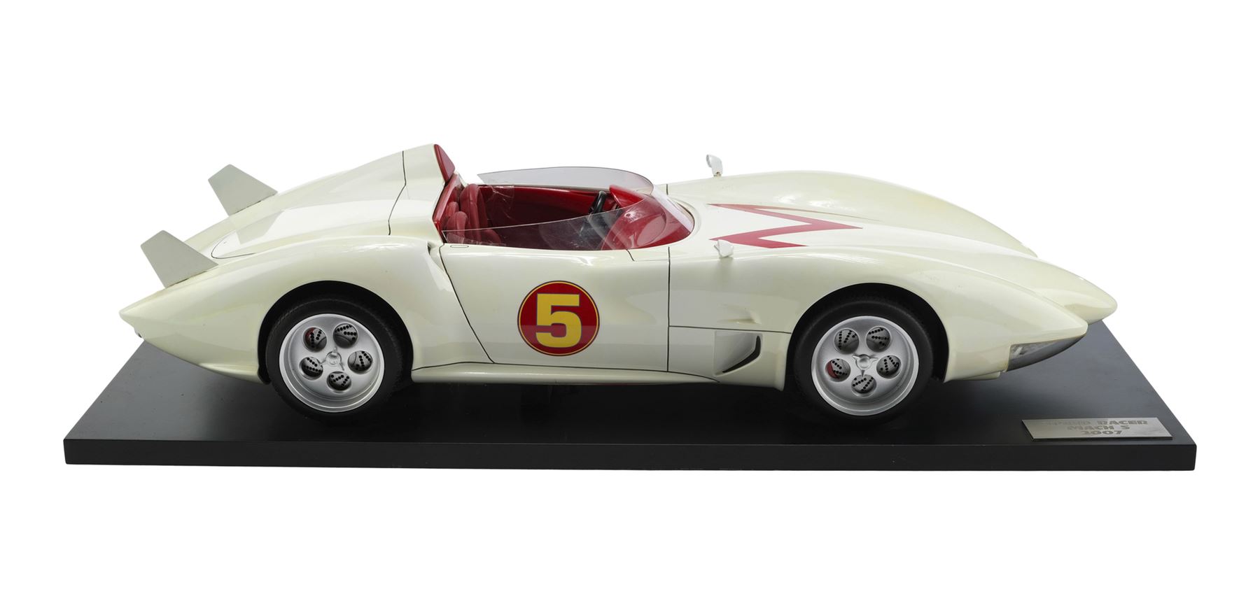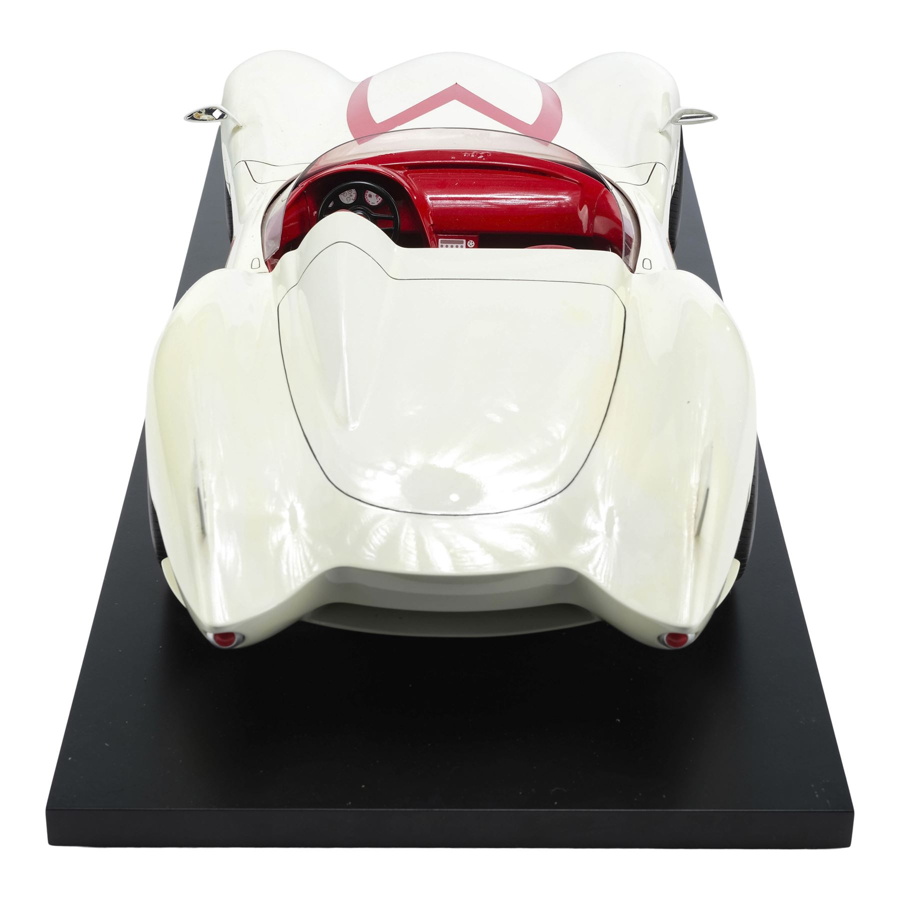 First introduced in Tatsuo Yoshida's Speed Racer manga, the Mach 5 racing scenes were created using a static full-scale model in digital environments. Both the full-scale vehicle model and this model miniature version were designed based on an original scale reference Mach 5 constructed by the prop department. Only 10 such model miniatures are believed to have been made by the production as gifts to senior crew members.