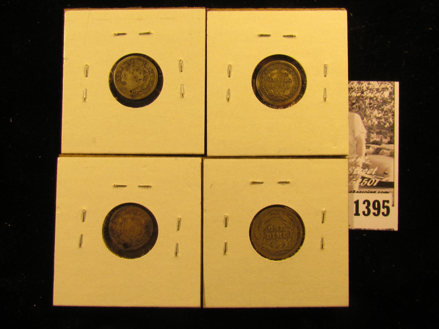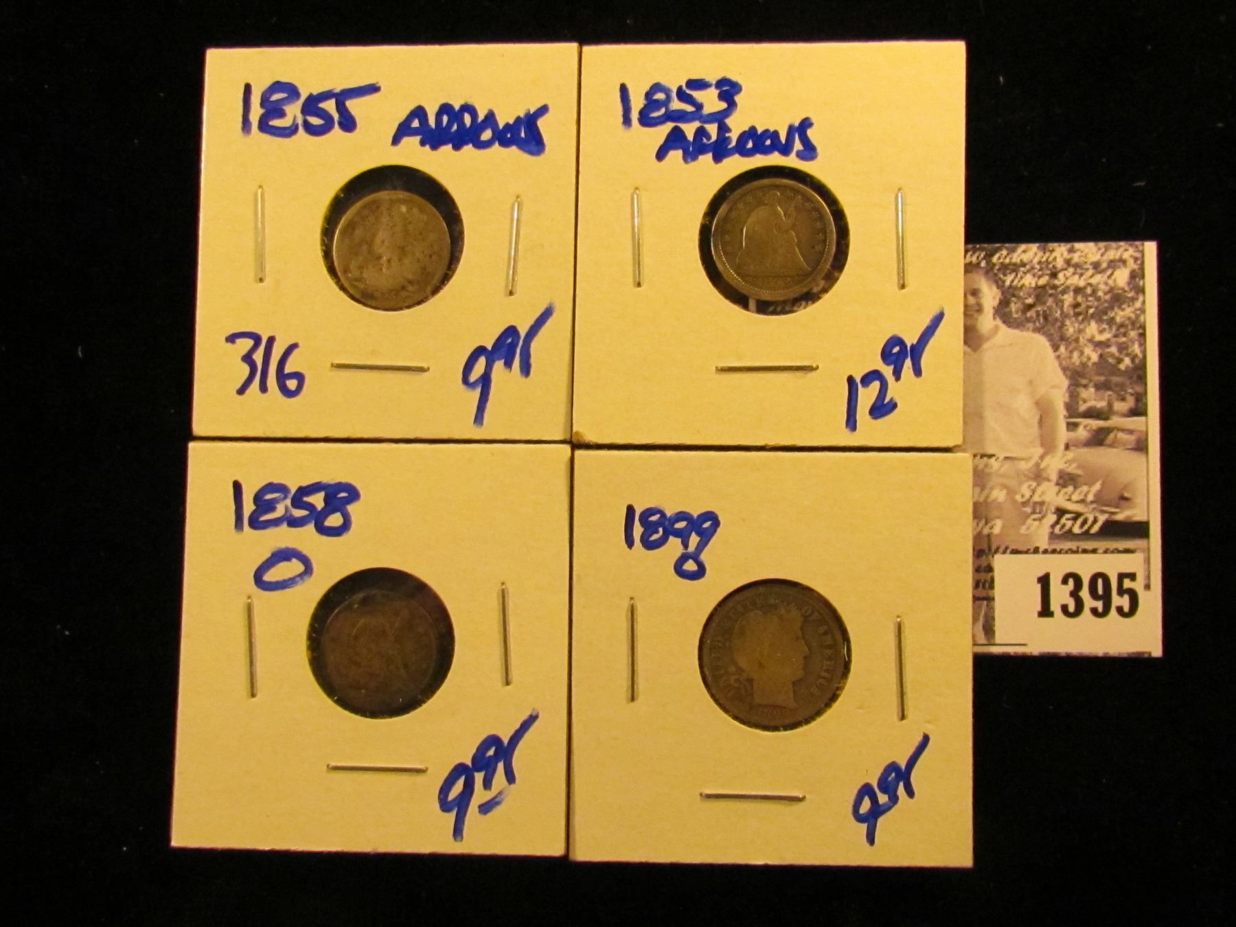 1395 . 1853 Half Dime With Arrows; 1899-O Barber Dime; 1858-O Holed Half Dime; & 1855 Seated Liberty Half Dime with Arrows