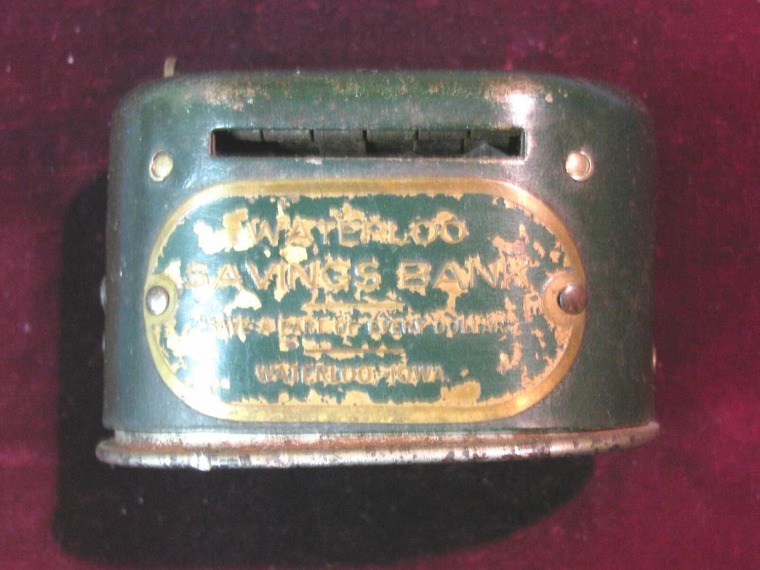 1395. Waterloo Savings Bank Metal Bank. No key. Manufactured by Stronghart Co.