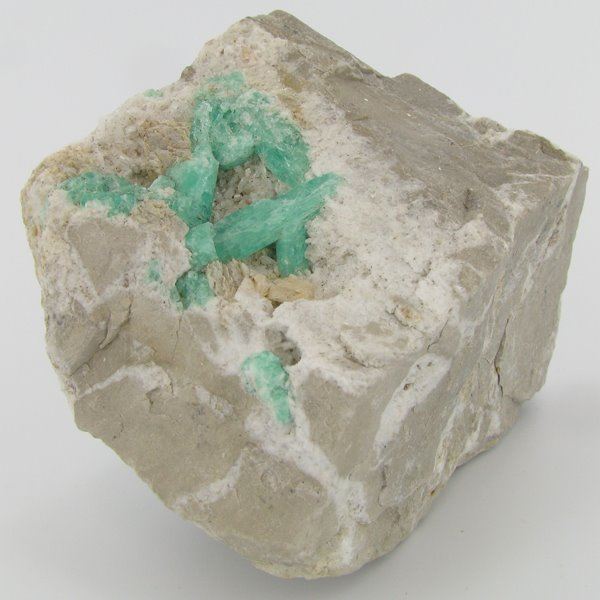 Excellent specimen with pyrite crystals and small emerald crystal vein on base material