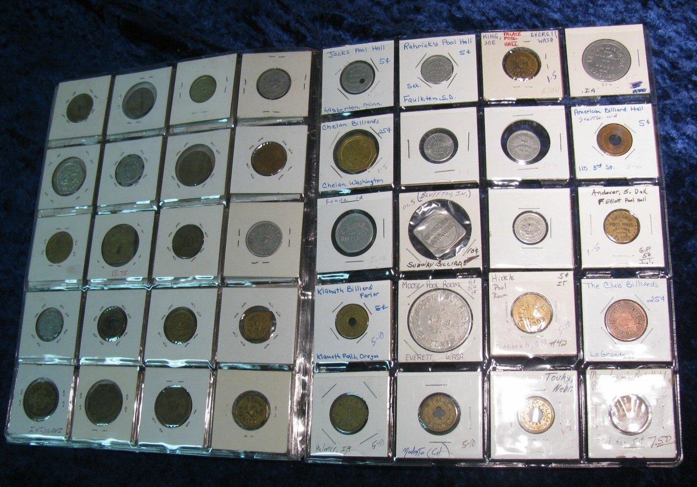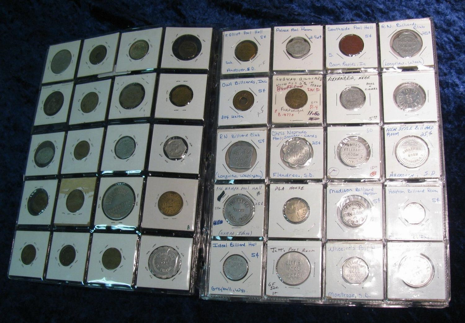 1396. Collection of (80) Billiard Hall Tokens. Many Different States.