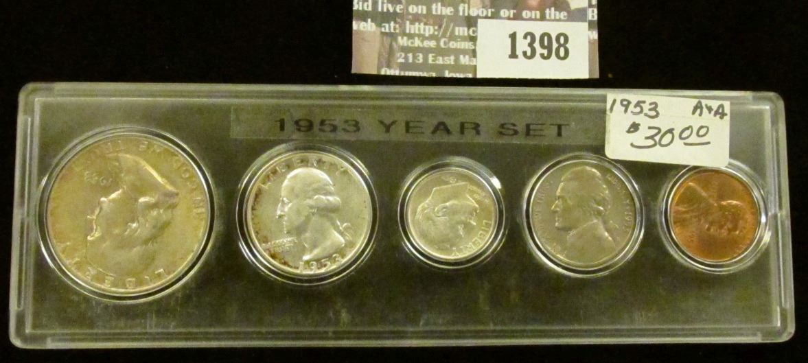 1398 _ 1953 Year Set of U.S. Coins, Brilliant Uncirculated to EF, and stored in a Snaptight Case.