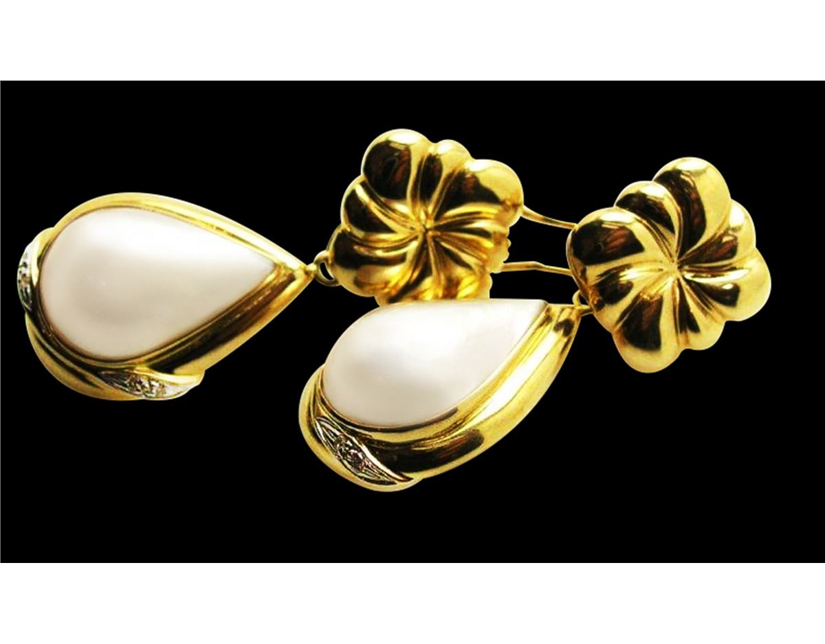 14K YELLOW GOLD NATURAL PEARL EARRING:13.90GRAMS/DIAMOND:0.20CT/PEARL : 13MM/#GVE1134