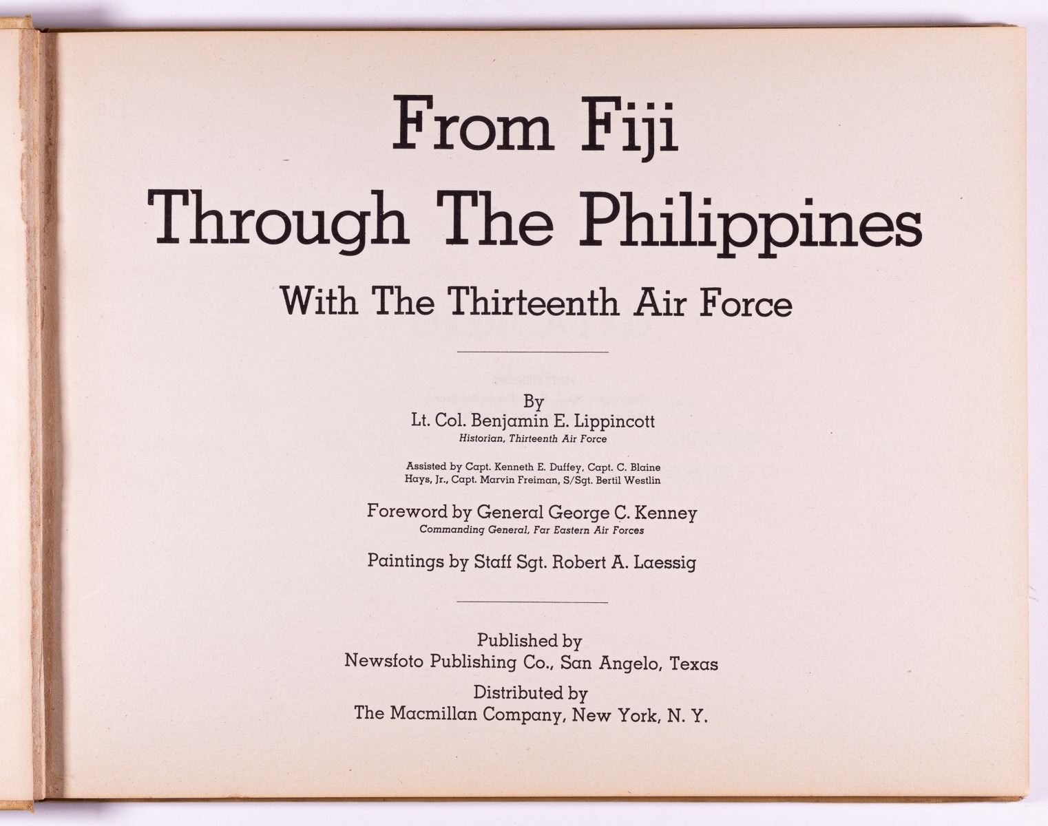 From Fiji Through the Philippines: With the Thirteenth Air Force', by Lt. Col. Benjamin E. Lippincott and illustrated by Staff Sgt. Robert A. Laessig. Published by Newsfoto Publishing Co., 1948, 193 pages, hardcover, 10 x 13 inches.
