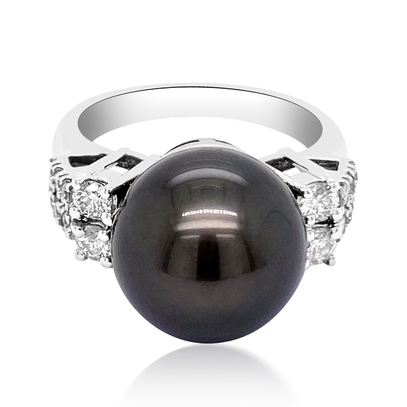 13mm PEARL 14K WHITE Gold 8gm Diamond 0.7ct Ring #DIA121