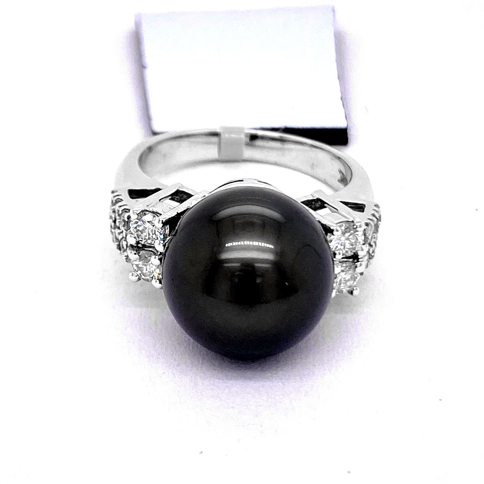 13mm PEARL 14K WHITE Gold 8gm Diamond 0.7ct Ring #DIA121