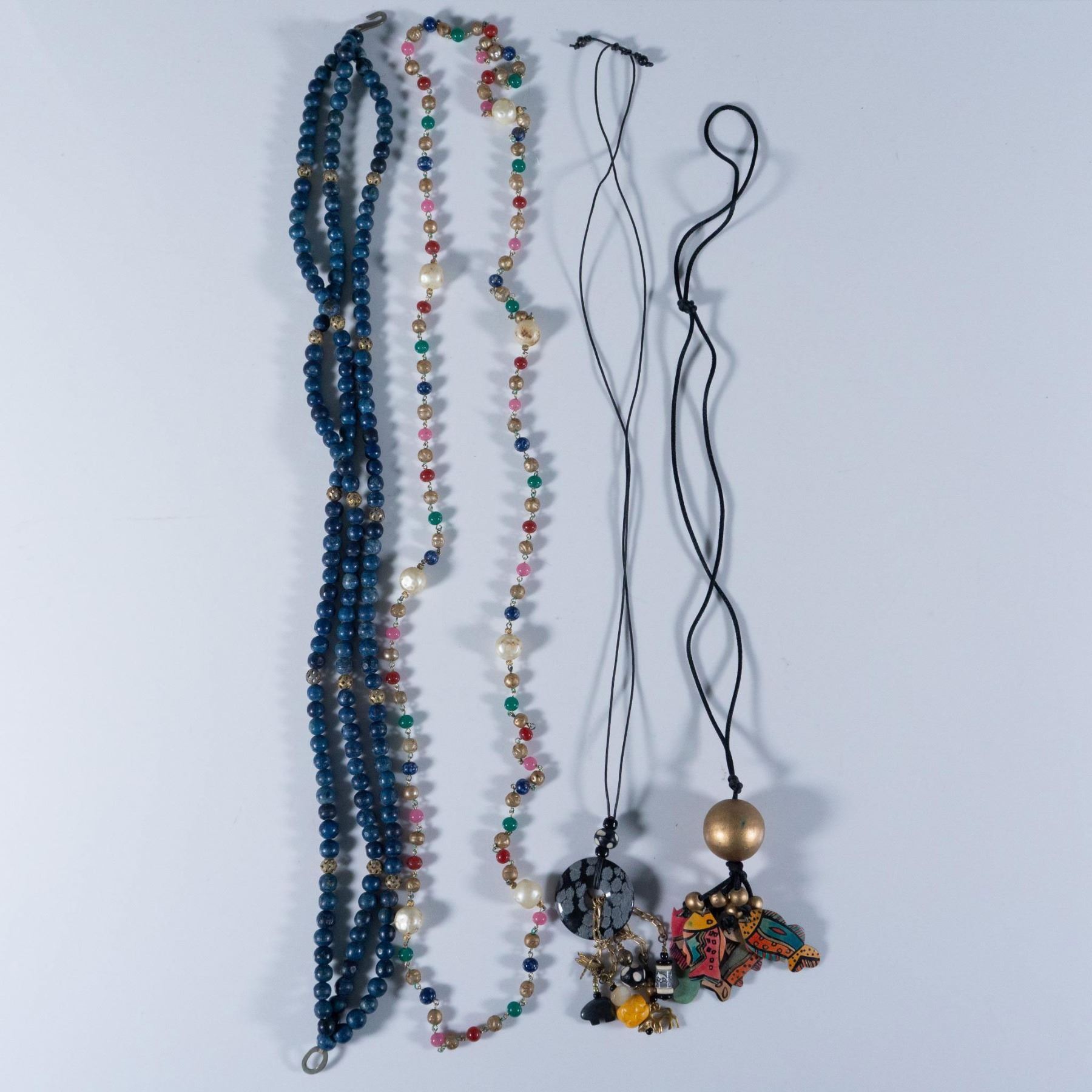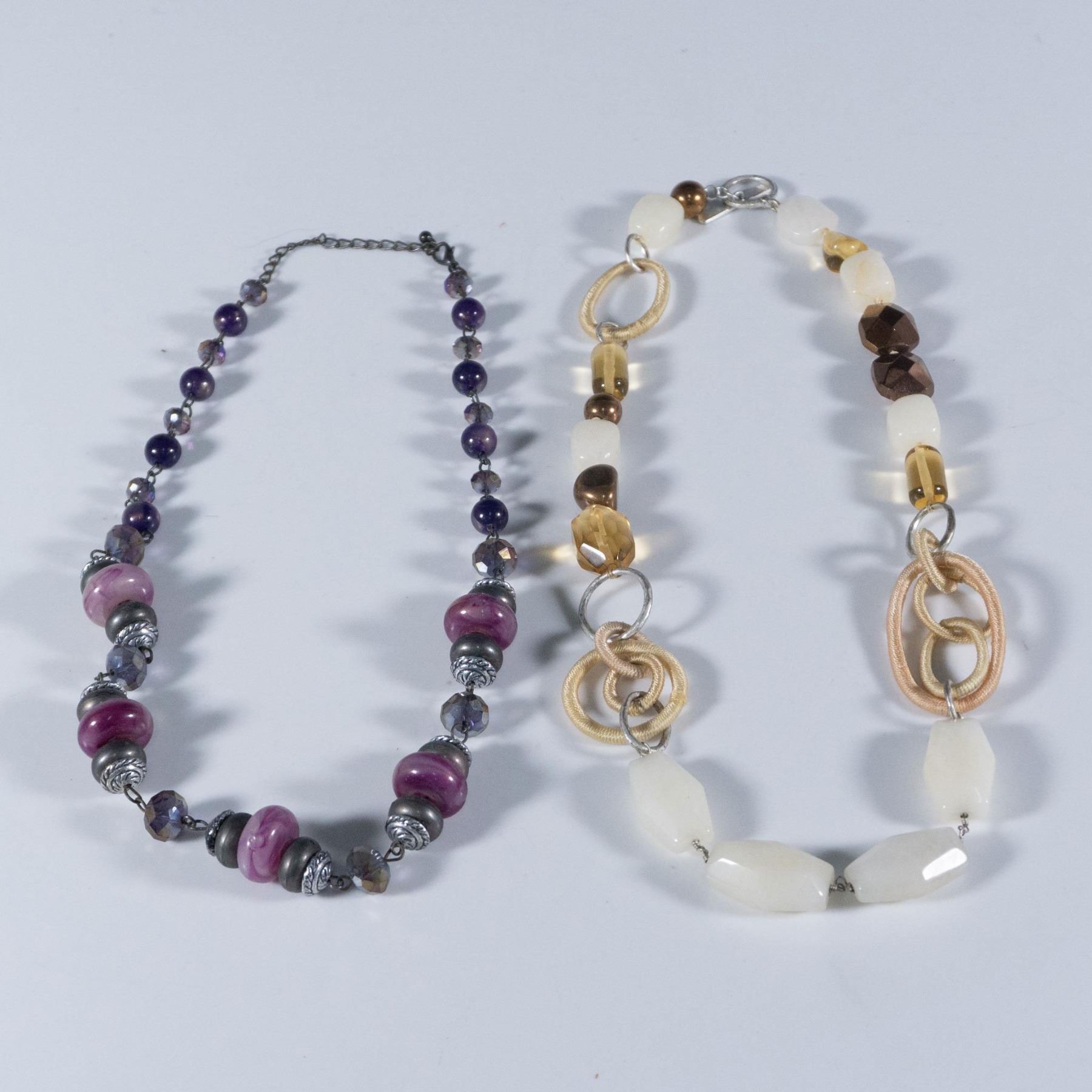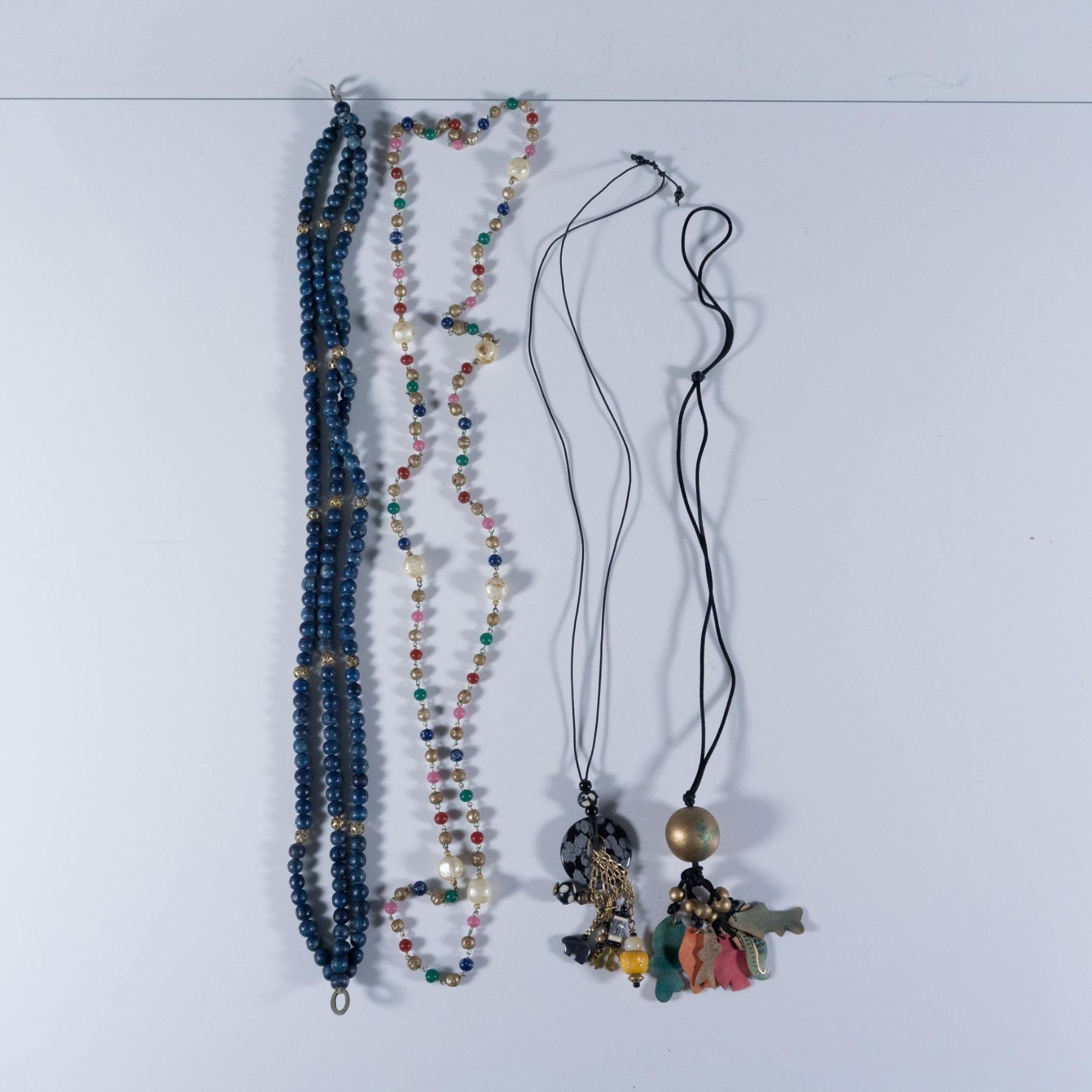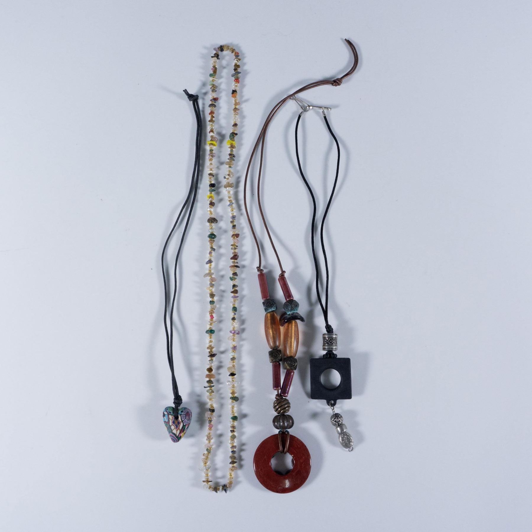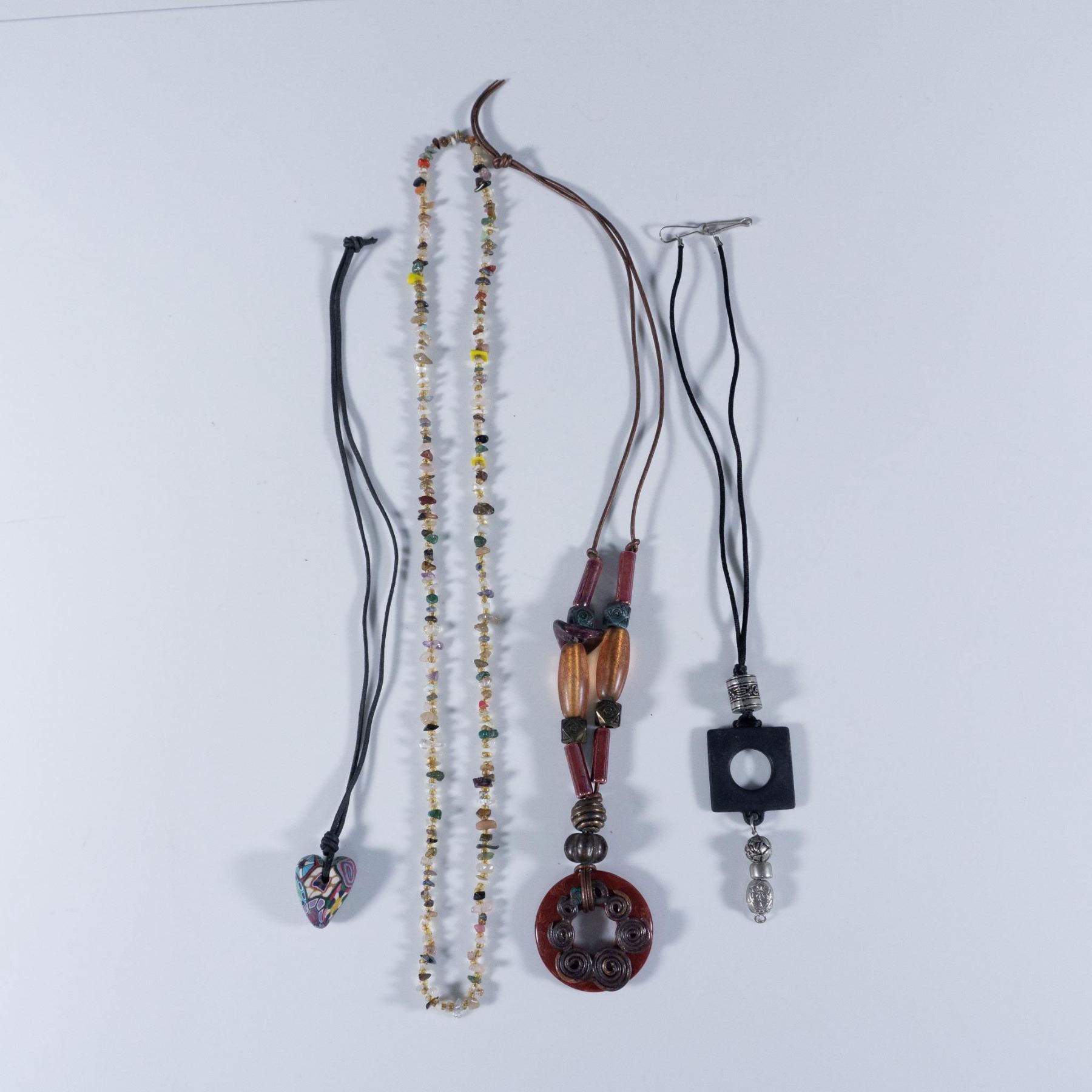 This collection showcases a variety of necklaces, ranging from long, multicolored Boho styles to short, contemporary designs. Each piece exudes unique charm, combining vibrant patterns with modern elegance. The largest necklace measures 27.5"L and is designed without a clasp. Dimensions: See Description