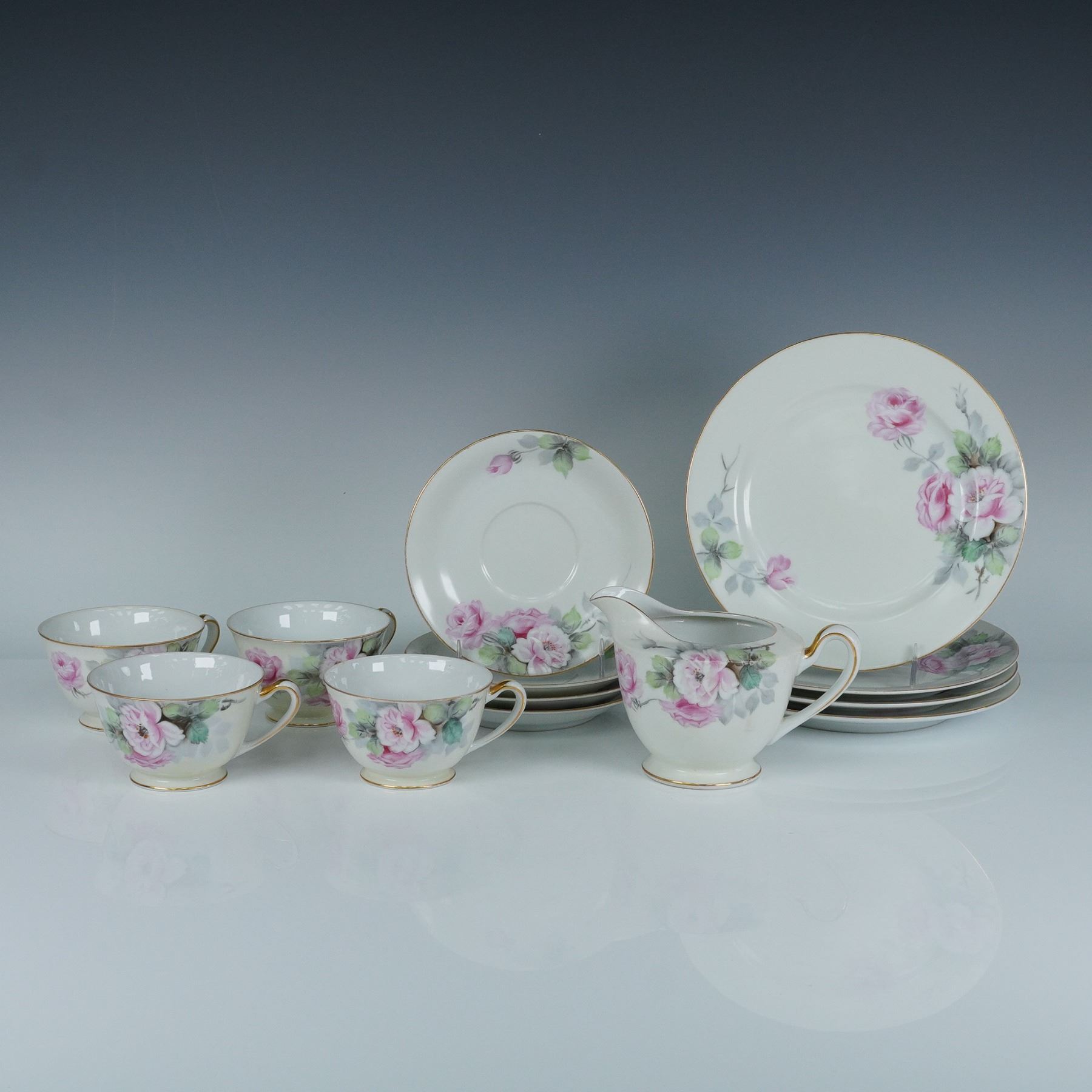 13pc Japanese Aichi China Pink Roses Pattern Tea Set