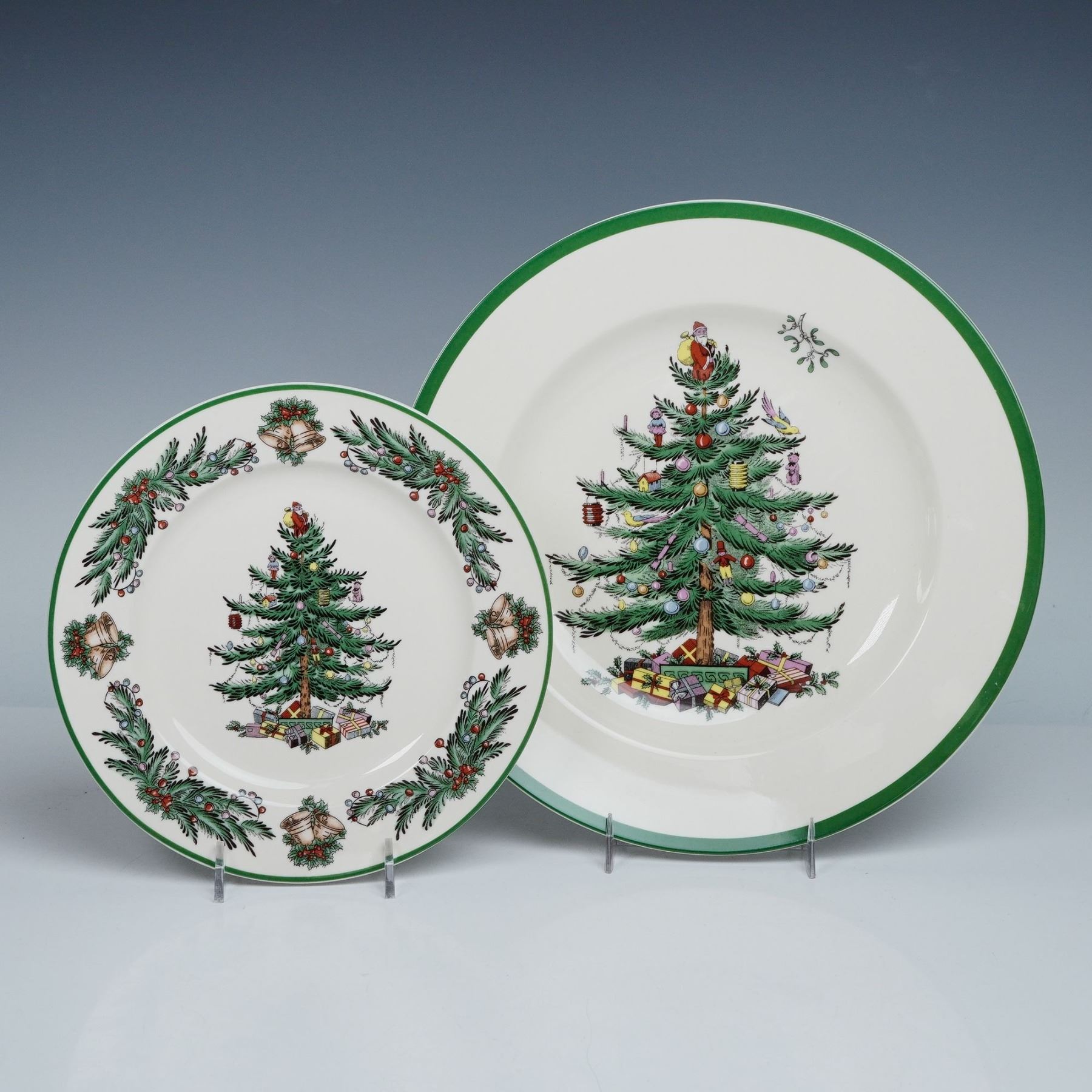 Festive and timeless, this 13-piece Spode Christmas Tree set captures the joy of the holiday season with its classic evergreen design adorned with ornaments, toys, and holly accents. The collection includes 4 dinner plates, 7 salad plates, and 1 cup with matching saucer from the 2010 annual edition, featuring the iconic Spode Christmas Tree pattern introduced in 1938. Each piece bears the Spode backstamp and is dishwasher, microwave, and freezer safe. A cheerful and collectible holiday tableware ensemble perfect for entertaining or display.