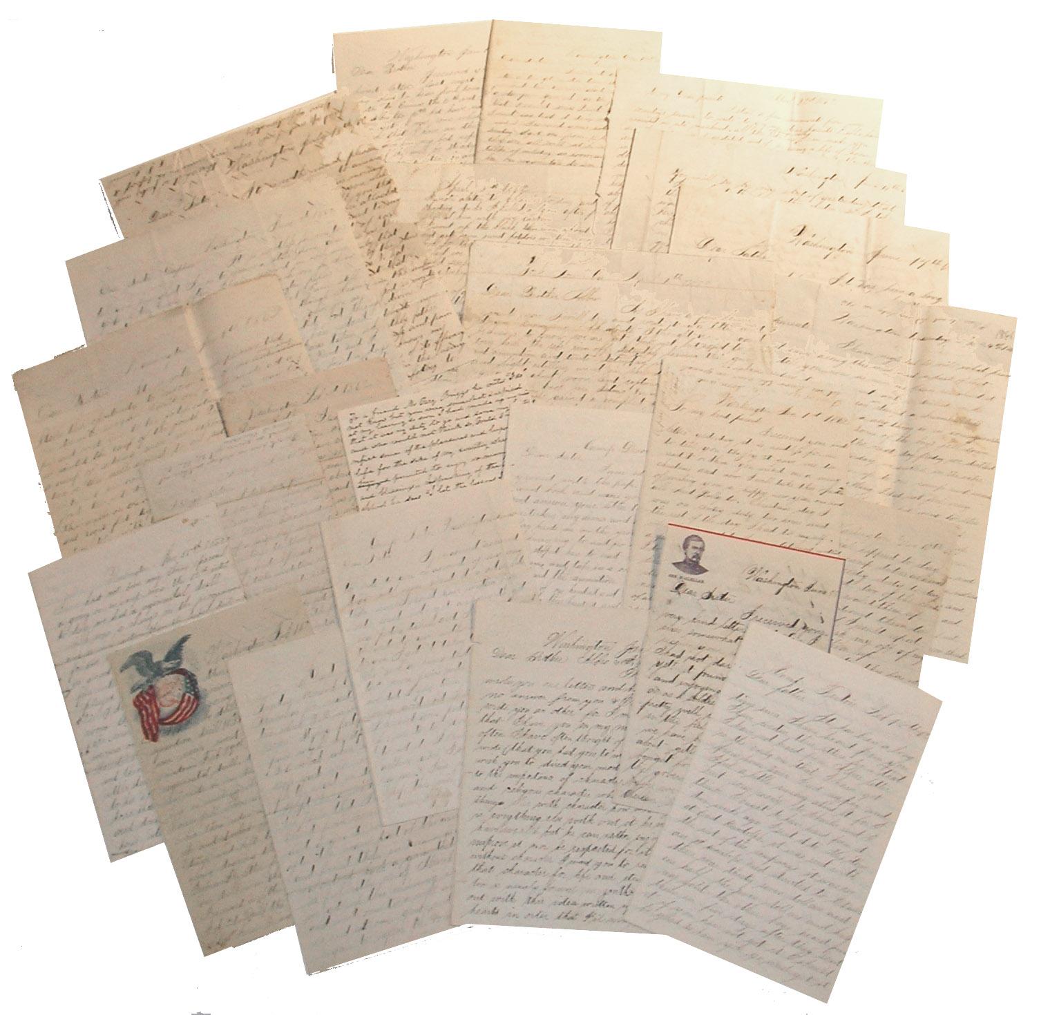 Incredible 86 letter lot by Sgt. Stephen B. Tarlton of the 13th New Hampshire Infantry from 1862-65, with detailed descriptions of the Battle of Petersburg, including being wounded on 1 June 1864. Tarlton participated in 22 different Civil War battles from the front lines, including Fredericksburg, Cold Harbor, Petersburg, Drury's Bluff, and many others. Most letter are addressed to Tarlton's Wife, Arianna (Ari) and their son Elmer. A 27 January 1863 letter reads in part: ''…Our Co is very sickley. Out of 98 men, we draw 65 rations and there is 47 of them sick. Only 18 men on duty. It makes it hard for those to do all the duty…'' A 23 April 1863 letter reads in part: ''…We have been in battle ever sence a week ago last Friday. Our Regt has proved themselves to be worth something. This time we have been doing picket duty right in the face and eyes of the Jonny's. We have to lay low, I tell you. I laid in a rifel pit 48 hours and could not get out except at night…We have got this place well fortified. It looks as though it would be imposible for the Rebs to take it. I don't know how many trops there is here, but there is an awfull lot of them. General Longstreet is in command of the Rebel forces at this point…You tell Frank that I have got a girl picked out for him. She is rether dark, but that is the stile out here. There is a splendid little darkey boy out here. I think it would just sute Anna. Thay don't cost any thing. We have more then 20 in our Regt that the boys picked up…'' A 4 May 1863 letter from Muskrat Farm in Suffolk, Virginia reads in part: ''…the one that makes me feel the worst is that of Harrison Foy. He was shot through the body with a musket ball. The ball went in under his right arm and come out under his left arm. He lived about 20 minuits…'' A 7 June 1863 letter reads in part: ''…It is a beautiful country. I should like to live here if it was not for slavery, that kills every thing. The white people here, what is left of them, are an ignorant set of beings…'' A 24 June letter with no year from Yorktown, Virginia reads in part: ''…Gen Dix and Gen Keyes is in advance of us with a large force. General Dix is in command of the forcees in this quarter. He is a sound, sober minded old veteran. That is my opinion… thay brought back 115 prisoners and General Fitshugh Lee and captured something like 80 waggons. Thay brought in 35 of them and burnt the rest…'' A 1 November 1863 letter reads in part: ''…Why in thunder don't thay come out and help end the war and not stop at home untill thay are drafted and then pay 3 or 400 dollars to get out of it and then growl because it lasts so long. Lett it last 6 years or 60, hope it won't end untill thay are all cleaned out…'' A 14 December 1863 letter reads in part: ''…The fellow come into our tent and was blowing about his mustache and thay says if you don't look out you will lose them. Well he kept on a blowing about them, so thay took him down on the floor and cut of his mustach. I never had any thing to do with it. I only held the candle. You know that I would not do any such a thing as that…'' A 28 March 1864 letter reads in part: ''…When I see a man killed by the side of me, I hardly think of it, but when I hear the death of a friend at home, it makes me feel very bad…The Johnny's keep deserting every day. Thay say it averages 15 deserters a day that are reported at Division Head Quarters…'' A 22 April 1864 letter from Yorktown, Virginia reads in part: ''…If they will keep the balls away from me, thay can't kill me by marching, not in the day time. You will feel bad when you get this letter, I am afraid, but you must not, if you can help it…'' A 4 June 1864 letter reads in part: ''...When I was hit, it knocked me senceless on the field, but after I come to my sences, I started forward again and went about a rod and fell. Then the Major ordered me to the rear. Then I thought the rascals would kill me before I could get into the woods. There was a shell exploded under my feet and knocked me pizzell end up, but did not hurt me…'' A 22 June 1864 letter reads in part: ''…The balls are whistling over my head every minute almost. Well, let them shoot. Thay can't hurt us a bit…'' A 4 August 1864 letter reads in part: ''…I saw 8 Rebs that were blown close over to our line, 300 yds or more. I don't know how many Rebs there were in the fort at the time, nor how much artillery. Some say there was 14 pieces. But Ari, the worst of is we got defeated…'' An interesting letter headlined ''...In the woods between Petersburg & Richmond†with no date reads in part: ''…I was lying in a Rebel rifle pit when one of our boys gave me the letter. It was one that we had taken the day before. I had just time to read your letter when the Rebs opened on us with grape and shell and musketry. I tell you if there wasn't some smoke, I don't know. Well we pitched into them like mad men, killing them by hundreds…'' An outstanding collection with unusually good Civil War content.