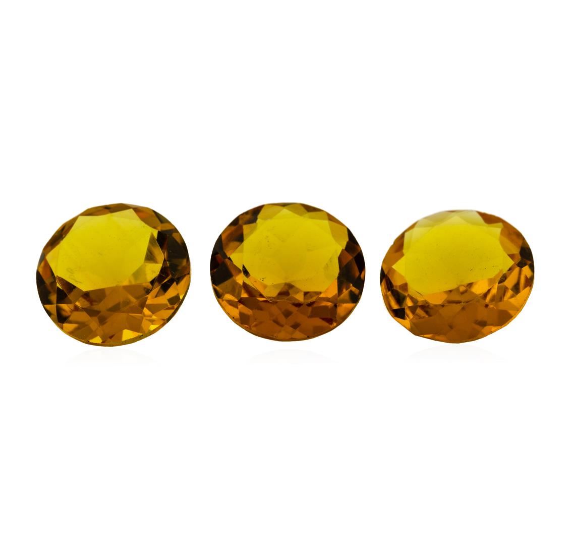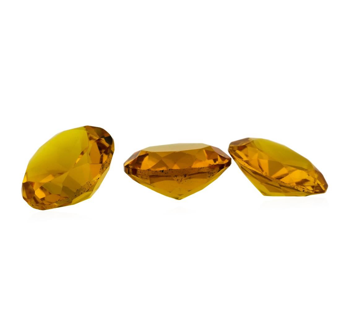One natural round cut citrine quartz parcel of three with an exact weight of 14.01ctw., clarity is eye clean, yellowish orange, medium dark. Gemological Appraisals Services estimates the retail value at $560.4 GAS Appraised.
