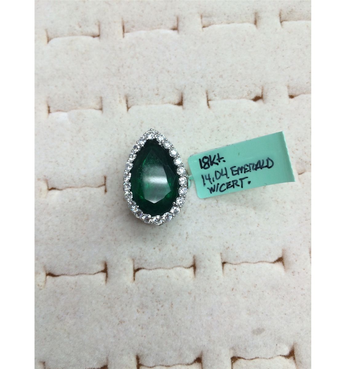 14.04 ct Emerald Brilliant Cut Pear Shaped Diamond Ring