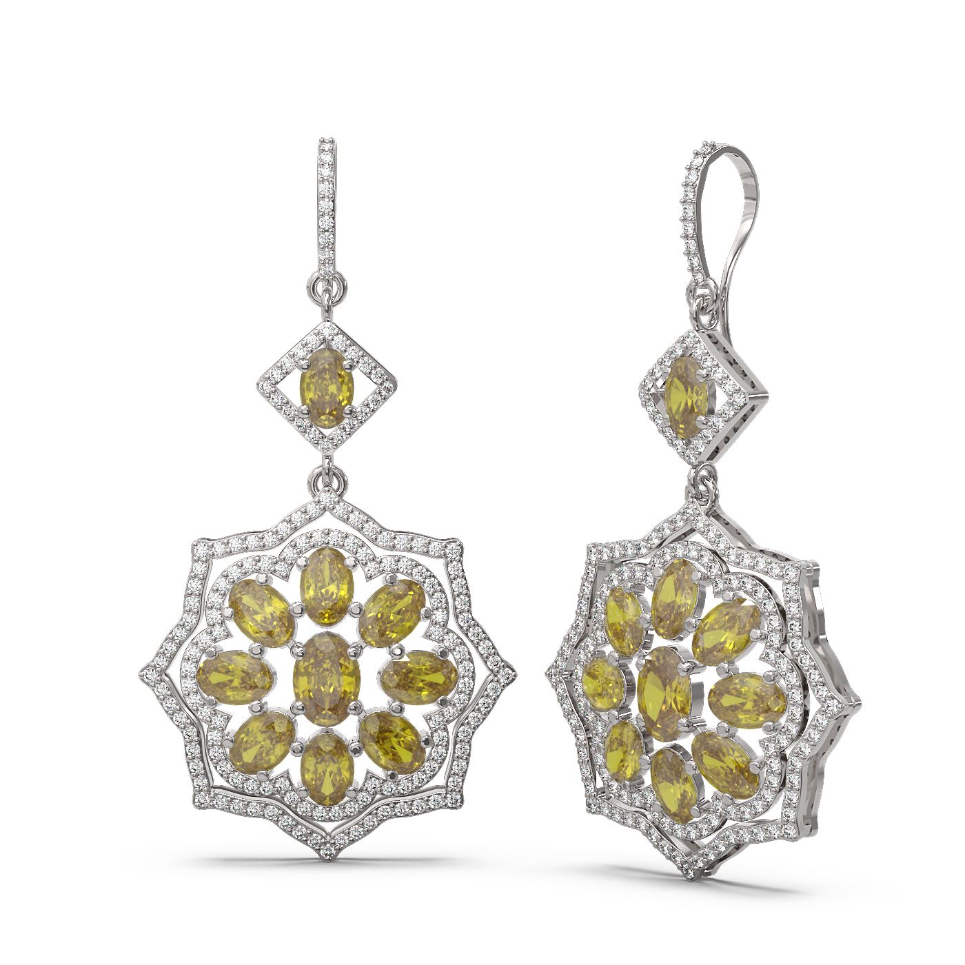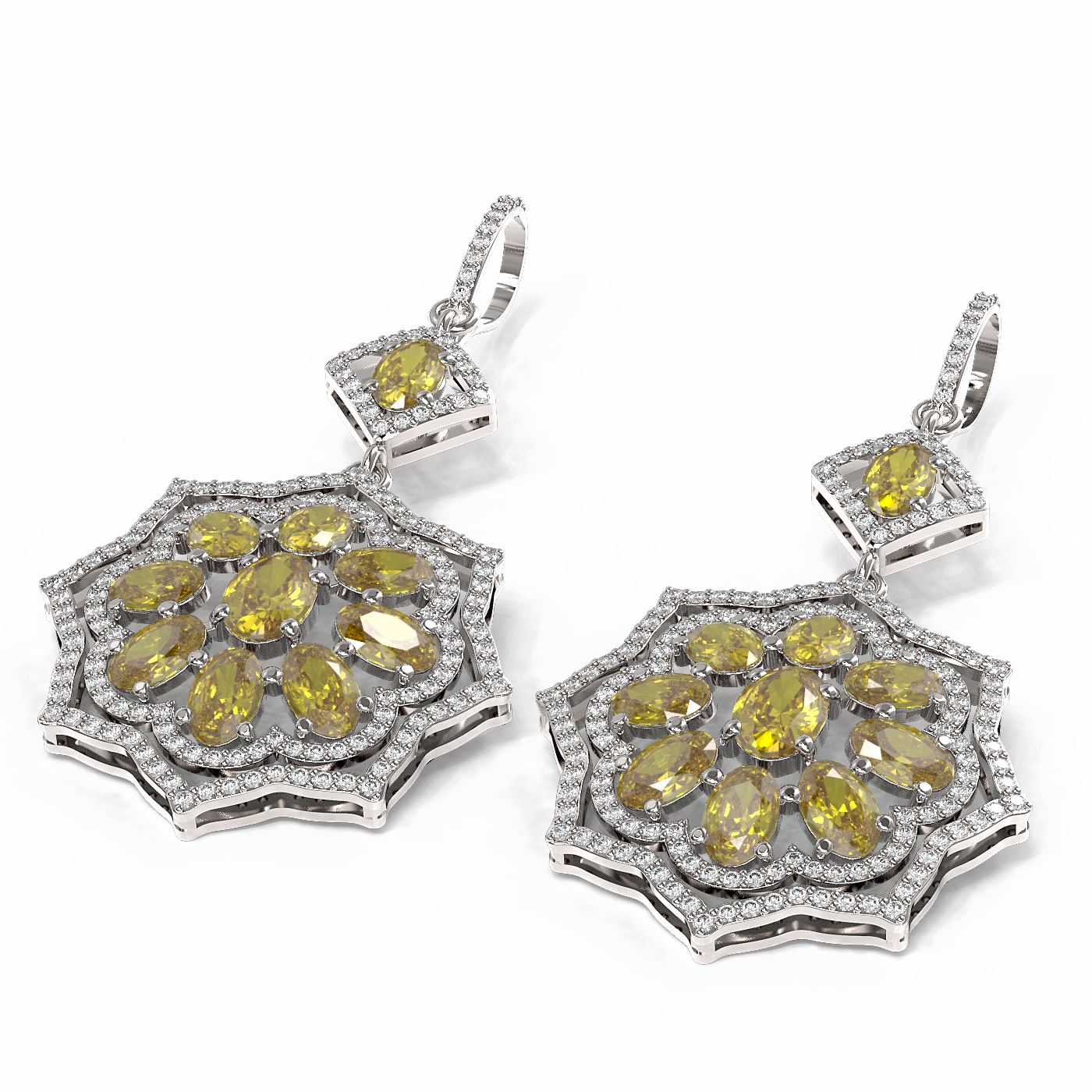 REF-320R4K - SKU: 51670 ---- 14.06 ctw Canary Citrine & Diamond Earrings 18K White Gold