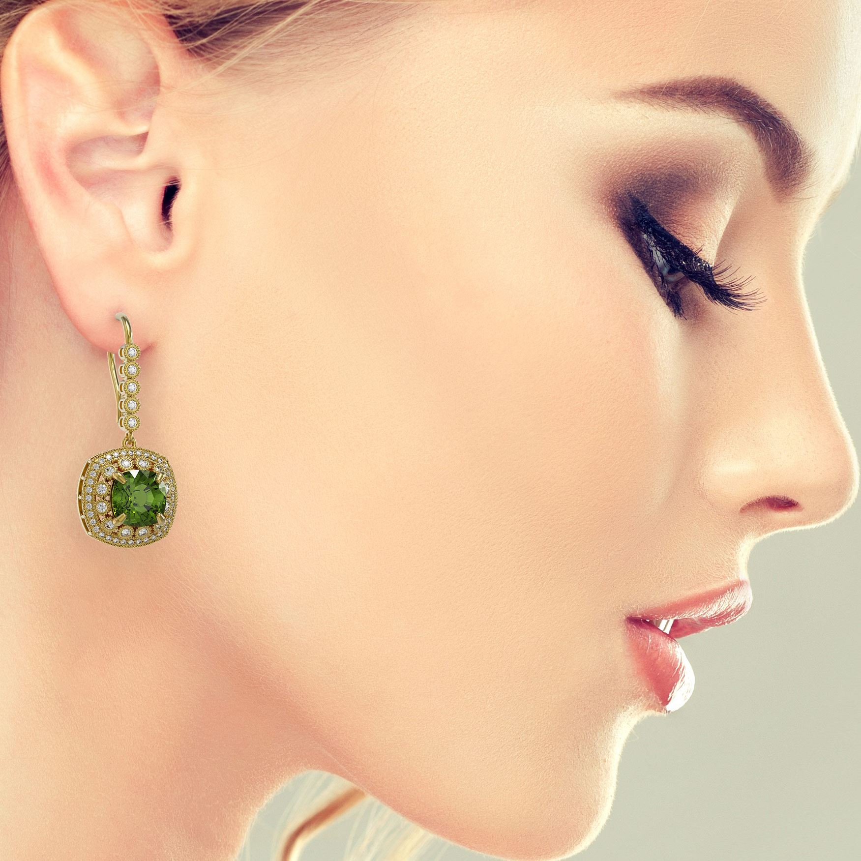 REF-331X5A - SKU: 43972 ---- 14.1 ctw Tourmaline & Diamond Victorian Earrings 14K Yellow Gold