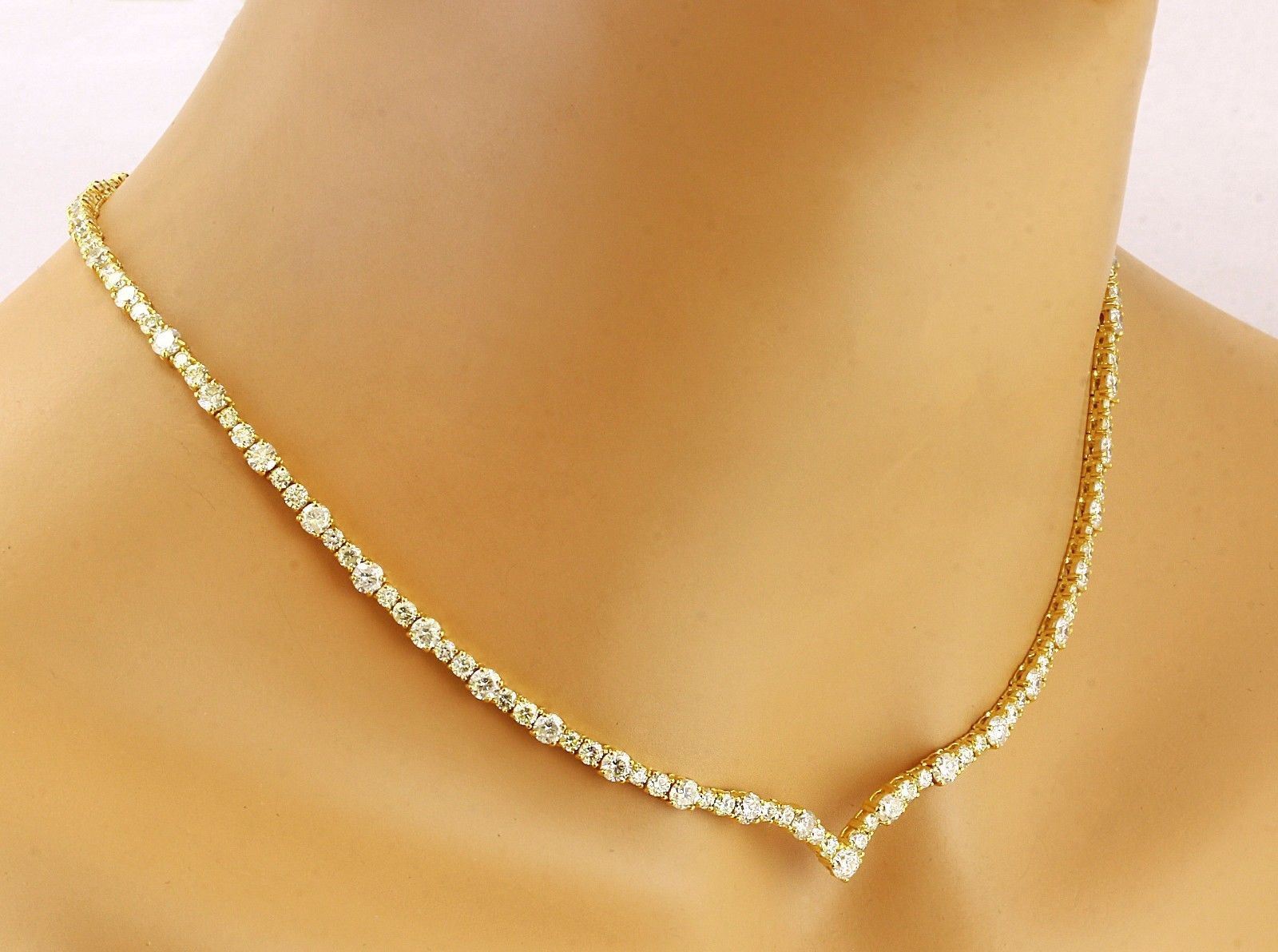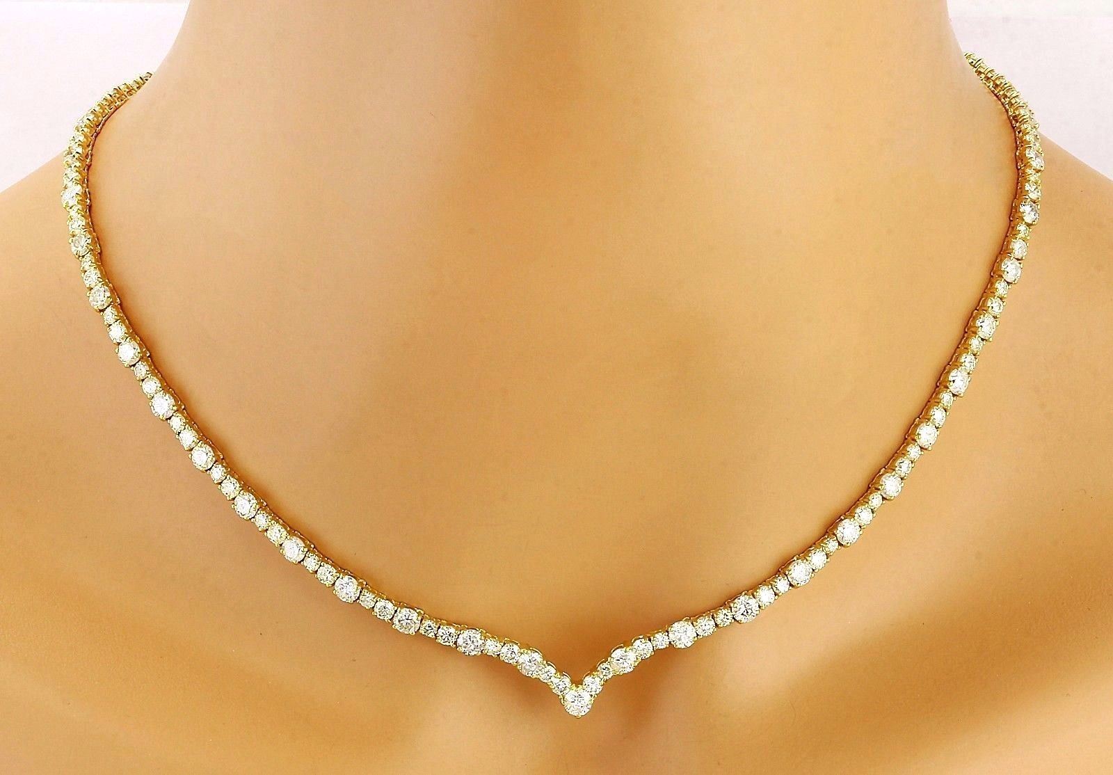 14.10 Carat Natural Diamond 14K Solid Yellow Gold Necklace