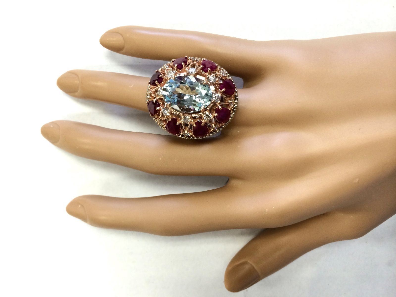 14.145 CTW Natural Aquamarine Ruby Diamond Ring In 14k Multi-tone Gold