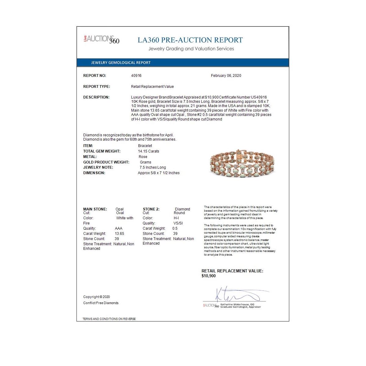 REF-247A3N - SKU: 40916 ---- 14.15 ctw Opal & Diamond Bracelet 10K Rose Gold