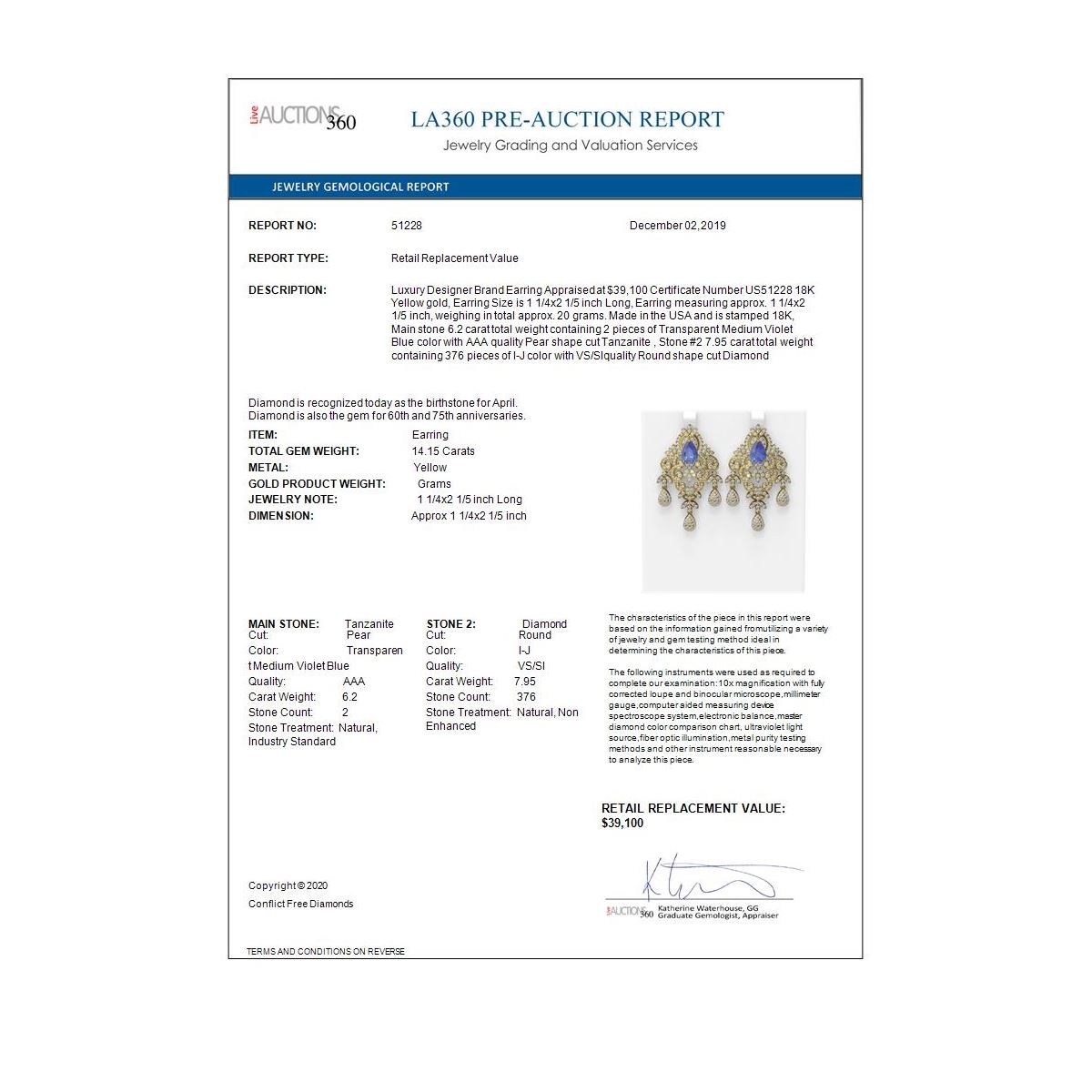 REF-889R3K - SKU: 51228 ---- 14.15 ctw Tanzanite & Diamond Earrings 18K Yellow Gold
