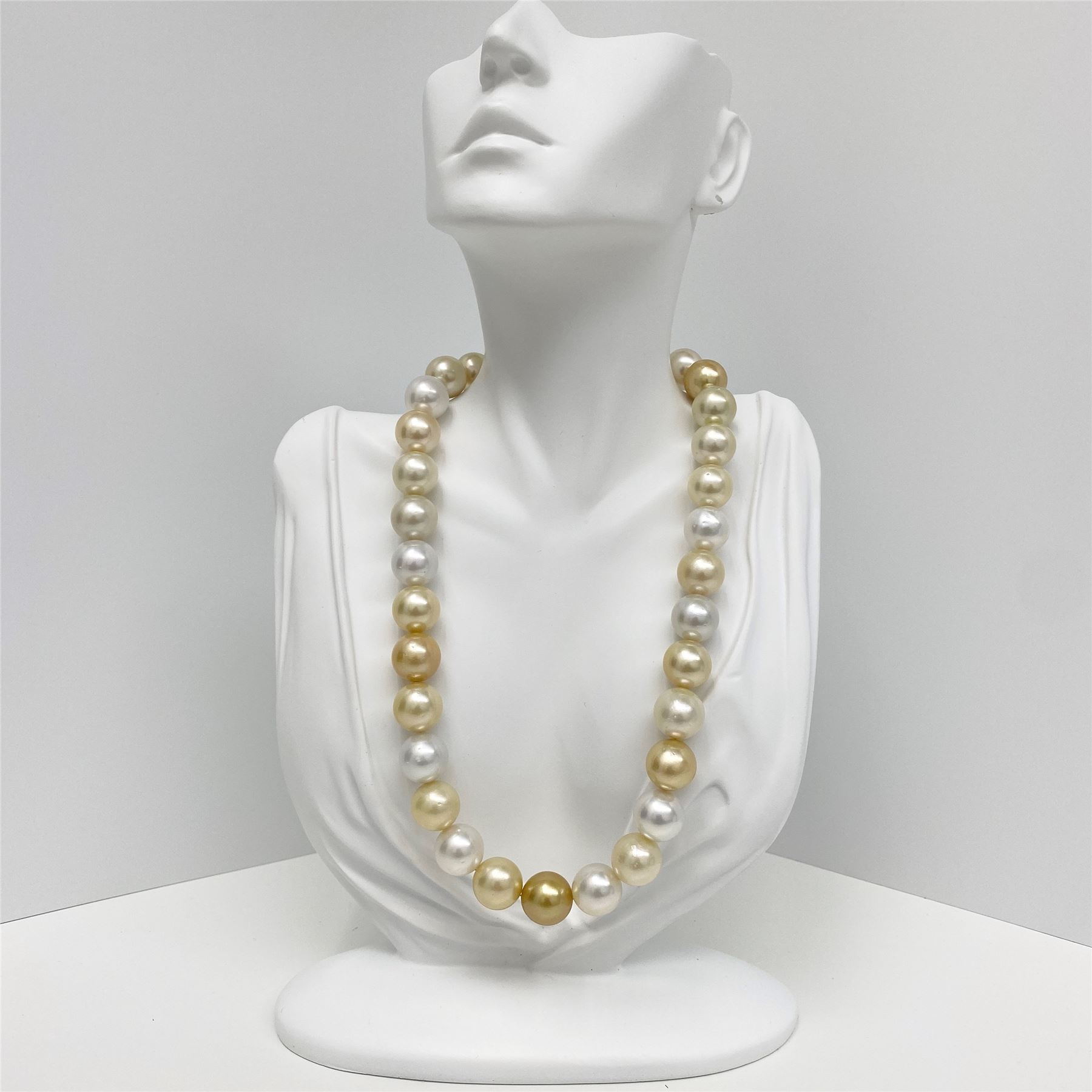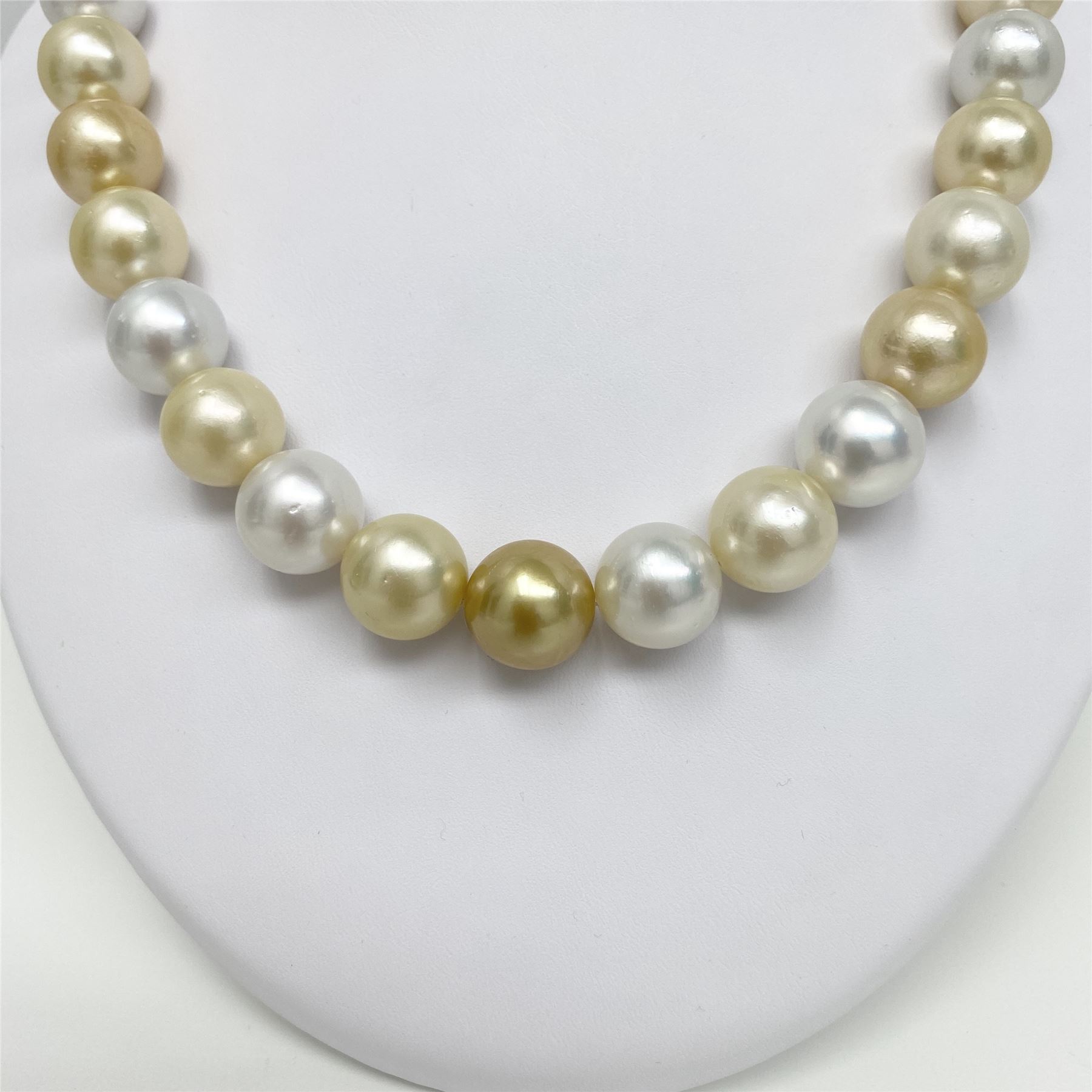 14-15mm South Sea White and Golden Round Pearl Necklace with Gold Clasp