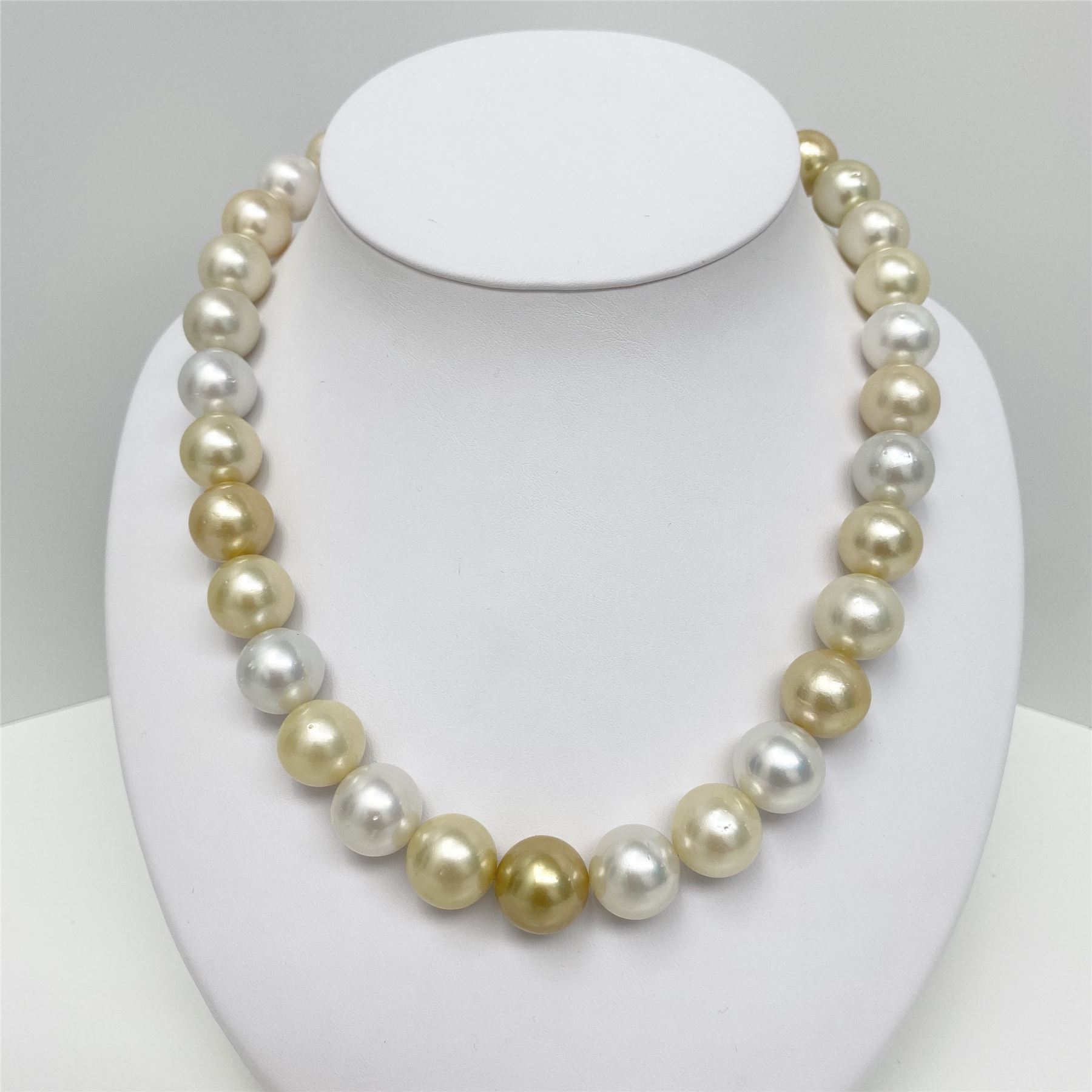 14-15mm South Sea White and Golden Round Pearl Necklace with Gold Clasp