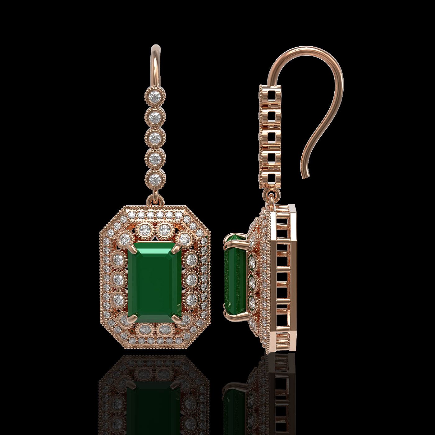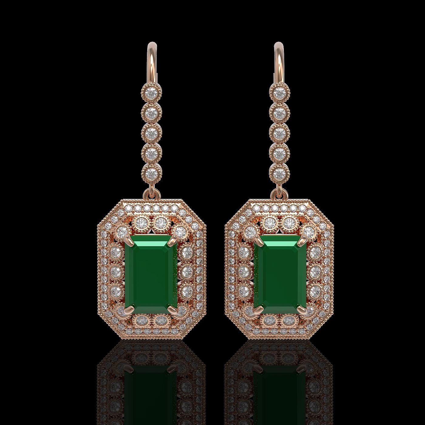 REF-345F5M - SKU: 43389 ---- 14.16 ctw Certified Emerald & Diamond Victorian Earrings 14K Rose Gold