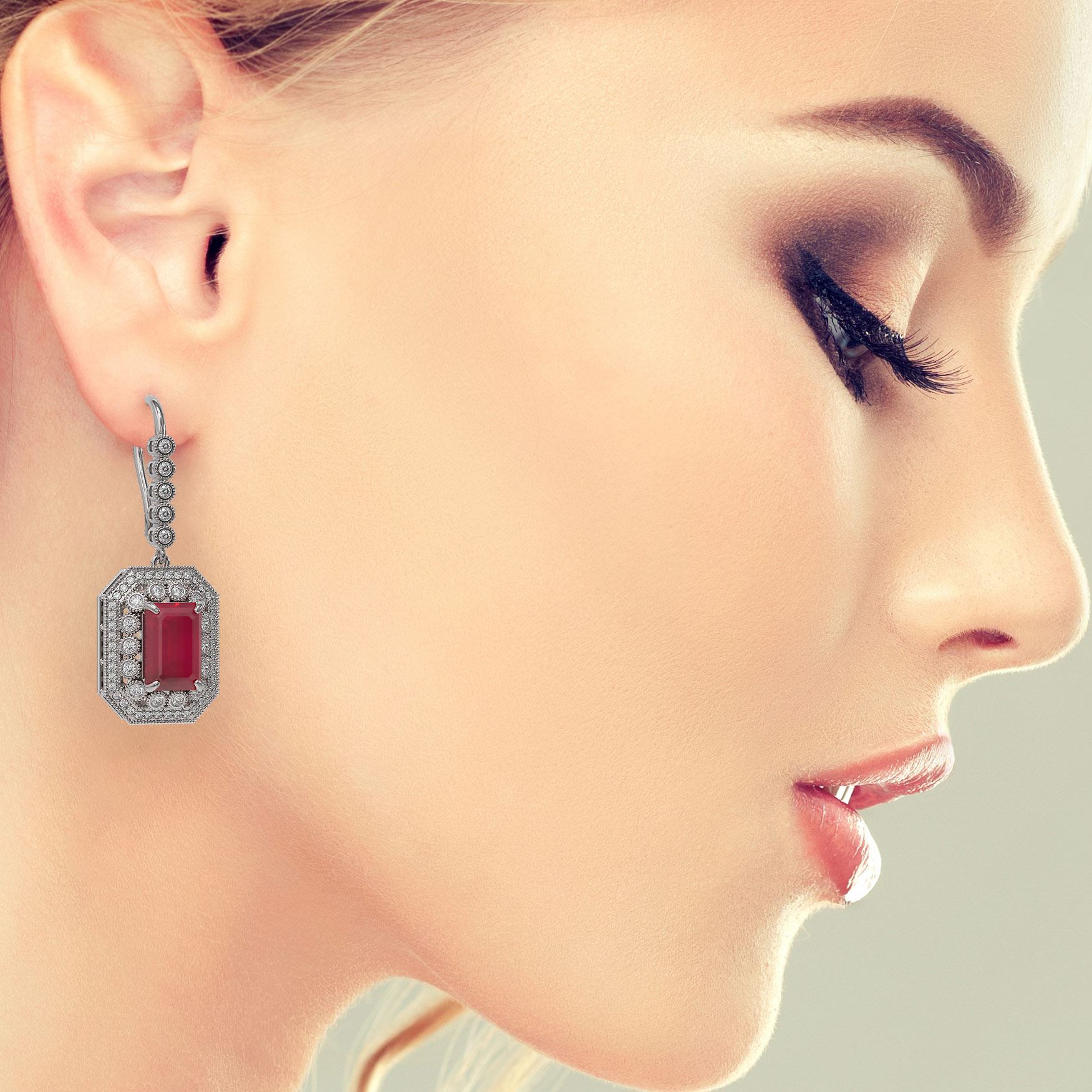 REF-318A2N - SKU: 43391 ---- 14.16 ctw Certified Ruby & Diamond Victorian Earrings 14K White Gold