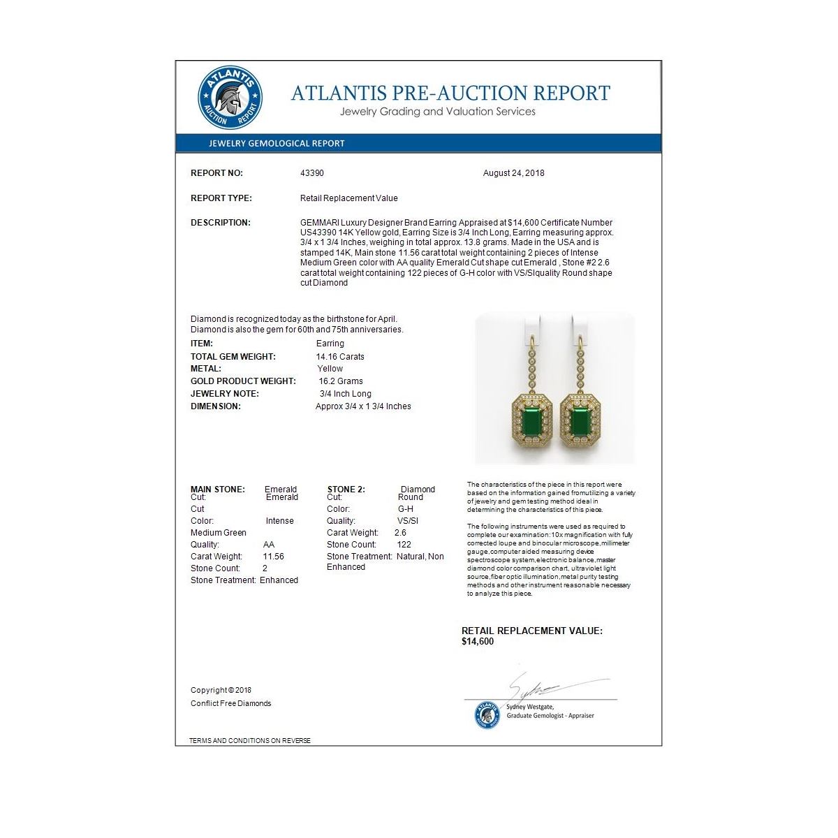 14.16 ctw Emerald & Diamond Earrings 14K Yellow Gold