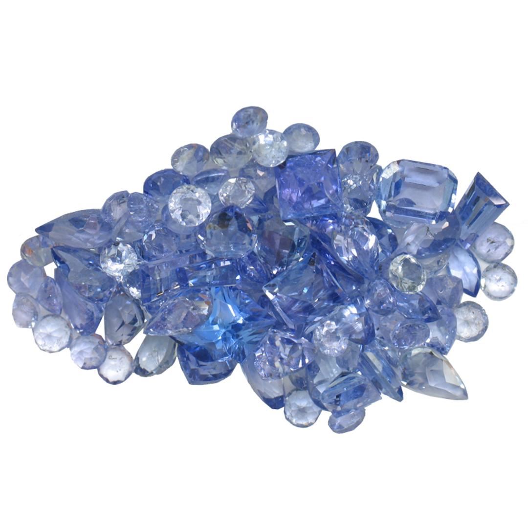 Fifty mixed cut natural tanzanites exact total weight 14.17ct., clarity is slightly included, type I, medium dark, very slightly grayish, violetish blue color, (GIA vB 6/3), cut is good. Measurements & the color grade are an average for the group, Color grade is an average for the group, Transmitting light with no distortion, transparent, Naturally occurring internal & external characteristics are present, Indications of multiple laboratory enhancements, including high temperature heat treatment. Westfield Appraised at $1,365.00.
