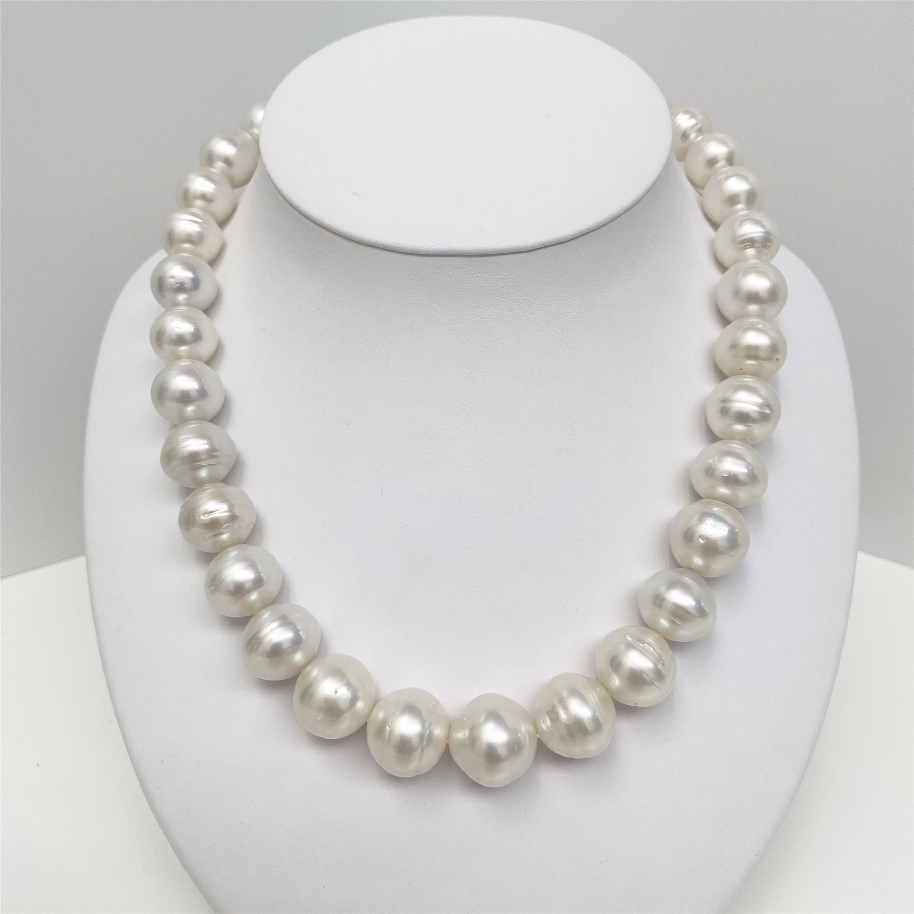 14-17mm South Sea White Circled Button Pearl Necklace with Gold Clasp