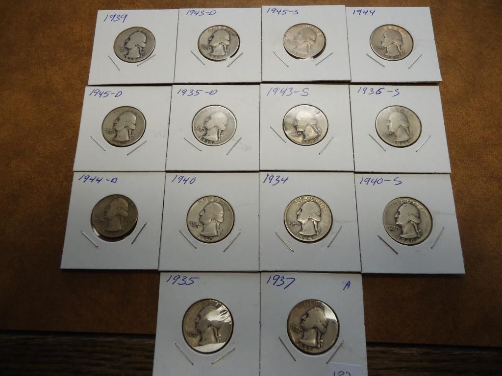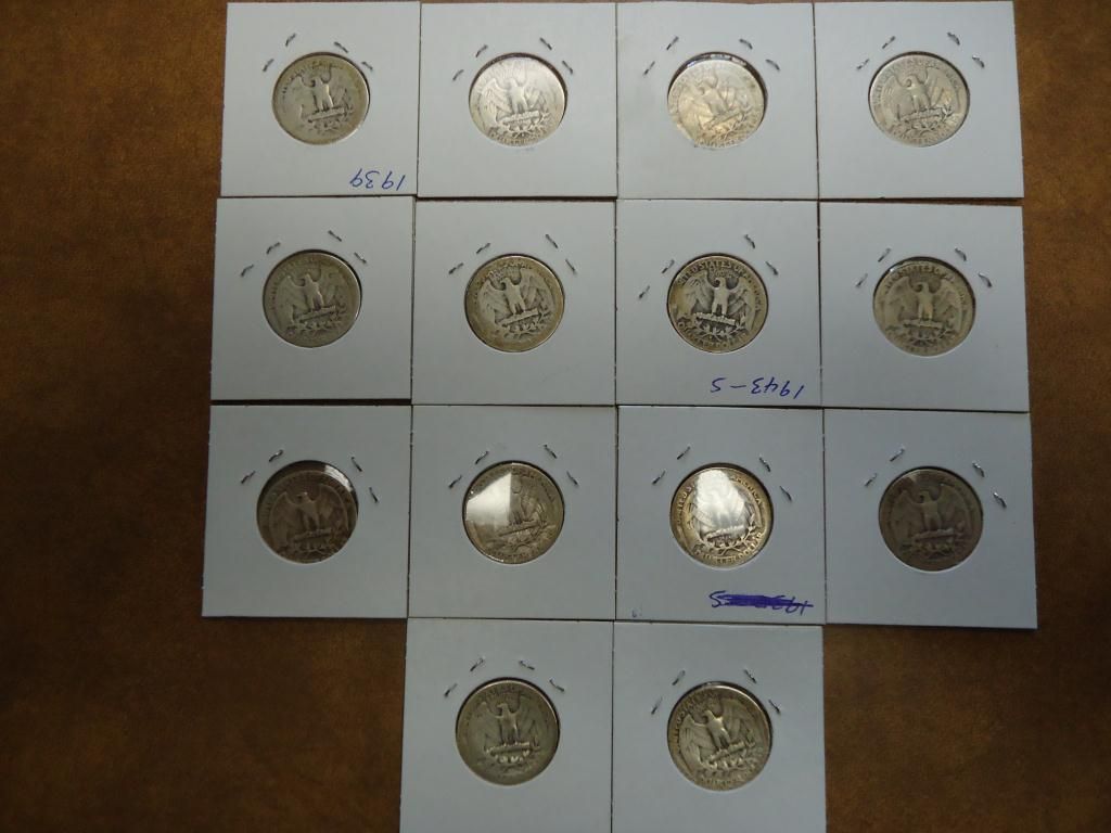 14-1930'S & 40'S WASHINGTON SILVER QUARTERS