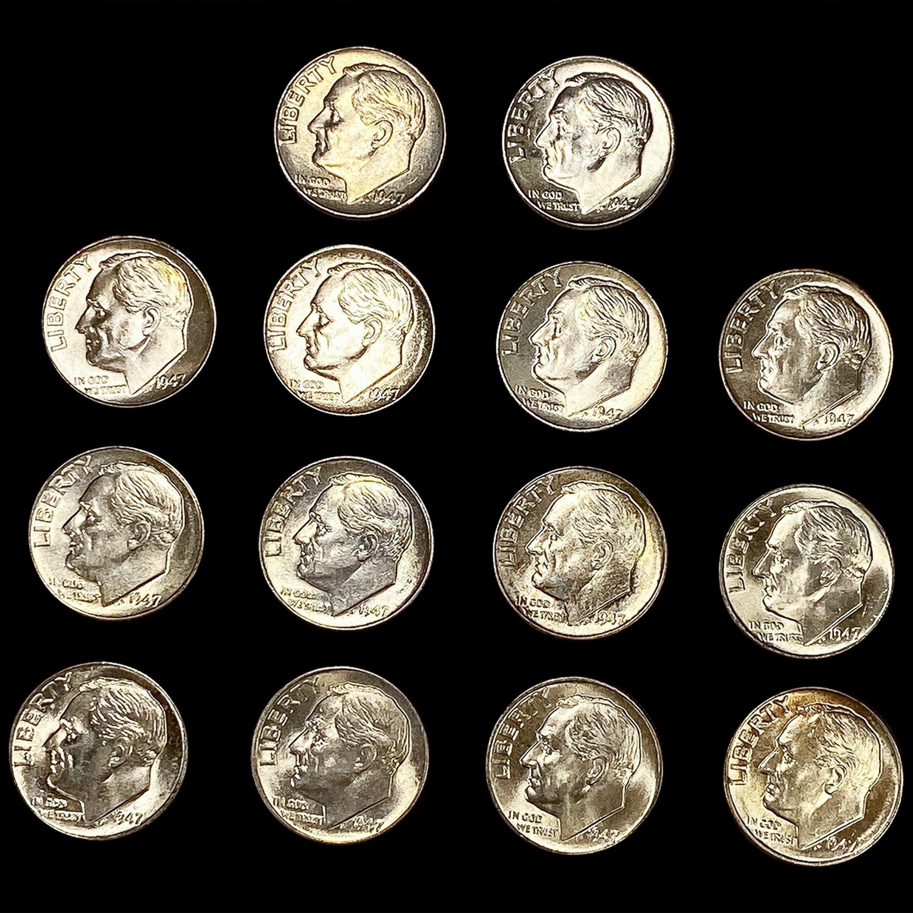 (14) 1947 Roosevelt Dimes UNCIRCULATED