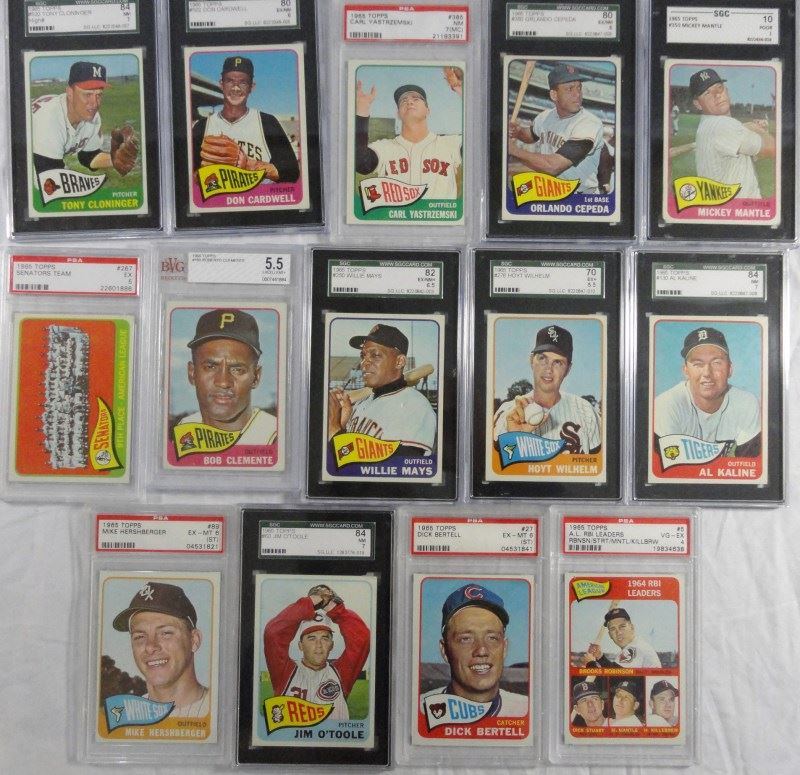INCLUDES #5,27,60,89,130 KALINE SGC 84, #160 CLEMENTE BVG 5.5, #250 MAYS SGC 82, #267,276,350 MANTLE SGC 10, #360,385 YAZ PSA 7, #502,520 MOSTLY EM6 OR BETTER ESTIMATE $370-$400