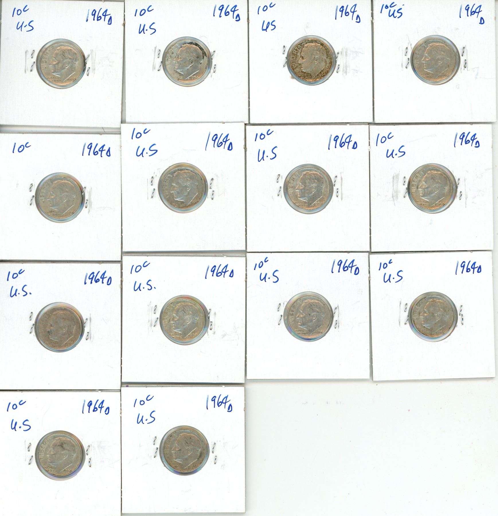 14 – 1964D ROOSEVELT US SILVER DIMES ALL UNC