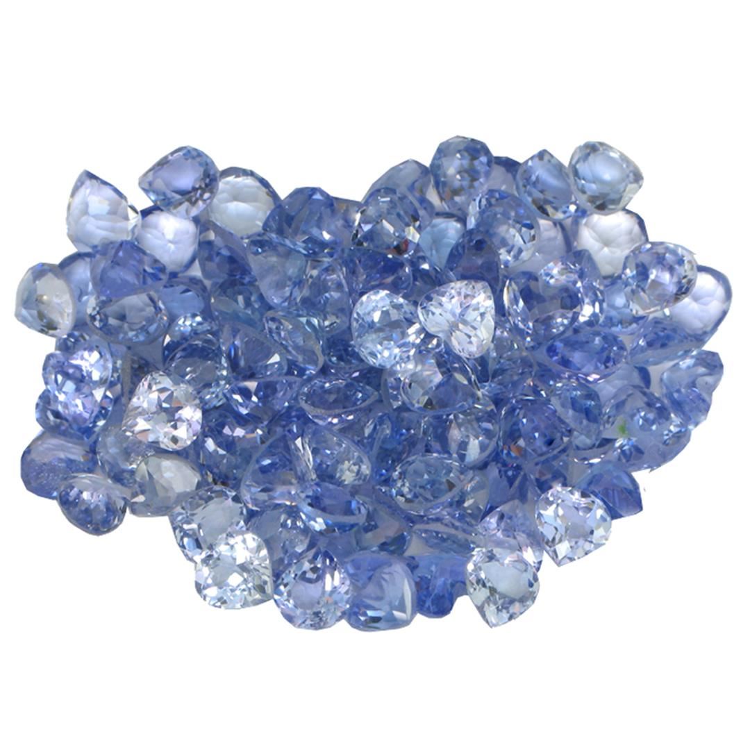 Fifty round mixed cut natural tanzanites, measuring 3.00 - 3.00 x 1.95 mm, exact total weight 14.19ct., clarity is slightly included, type I, medium, very slightly grayish, violetish blue color, (GIA vB 5/3), cut is good. Measurements & the color grade are an average for the group, Color grade is an average for the group, Transmitting light with no distortion, transparent, Naturally occurring internal & external characteristics are present, Indications of multiple laboratory enhancements, including high temperature heat treatment. Westfield Appraised at $1,365.00.