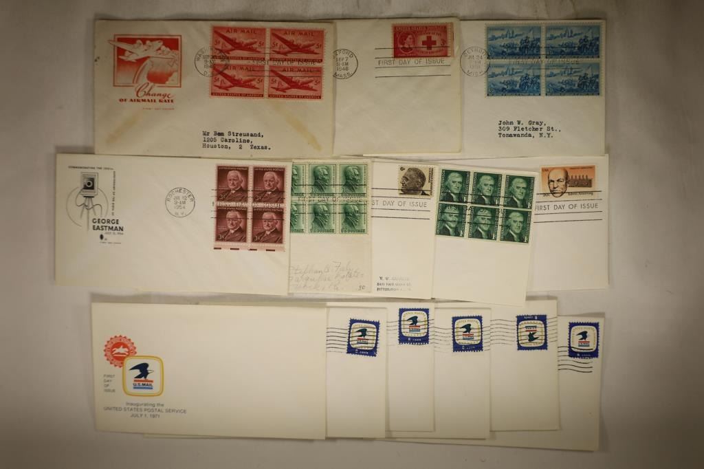 SERVICE AND 1-1945 CHANGE OF AIRMAIL RATE ALL WITH CANCELLED STAMPS, 1948 HONORING CLARA BARTON, 1951 DETROIT 250TH BIRTHDAY, 1954 GEORGE EASTMAN, 1963 ANDREW JACKSON, FRANKLIN DELANO ROOSEVELT, 1968 THOMAS