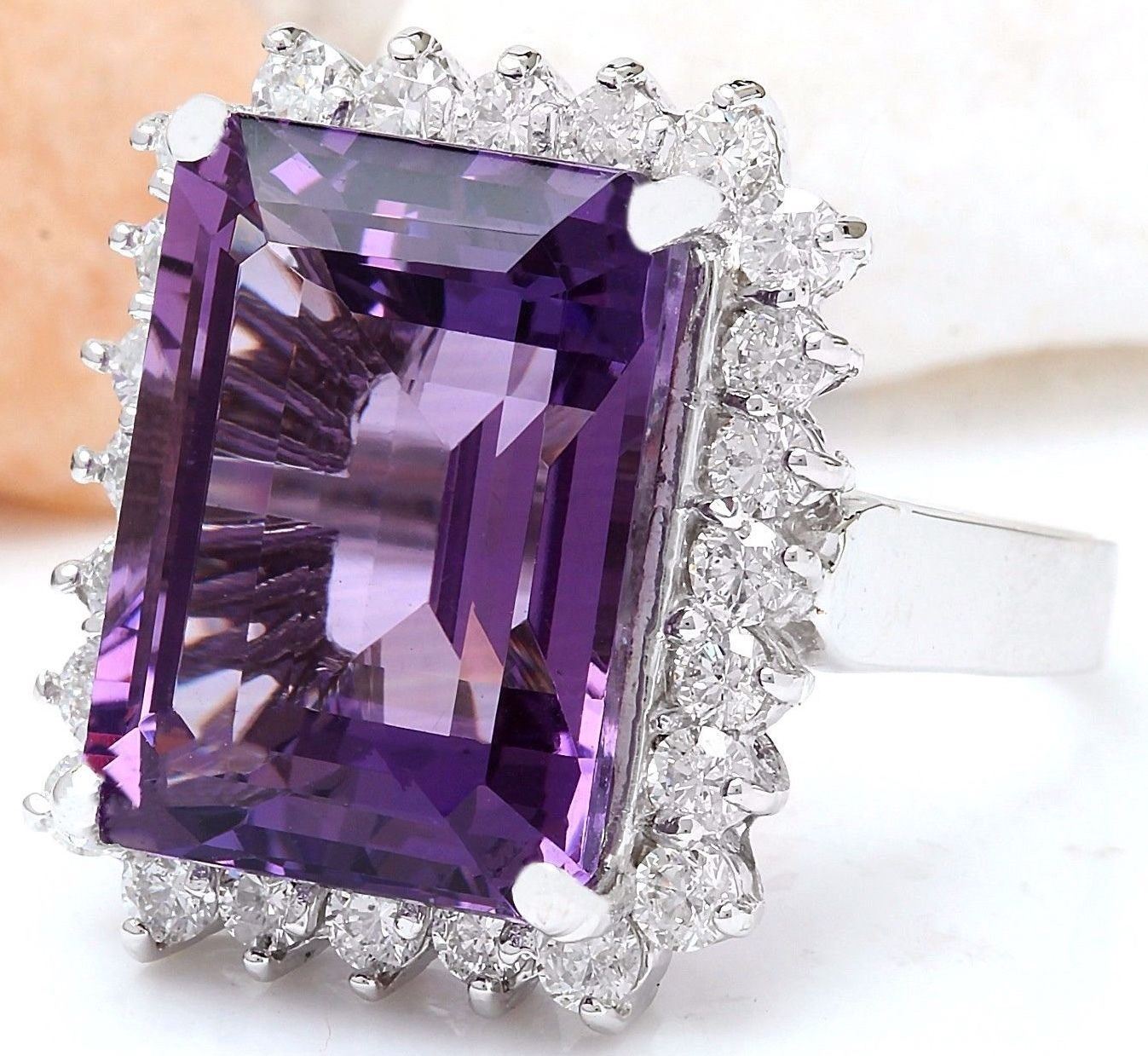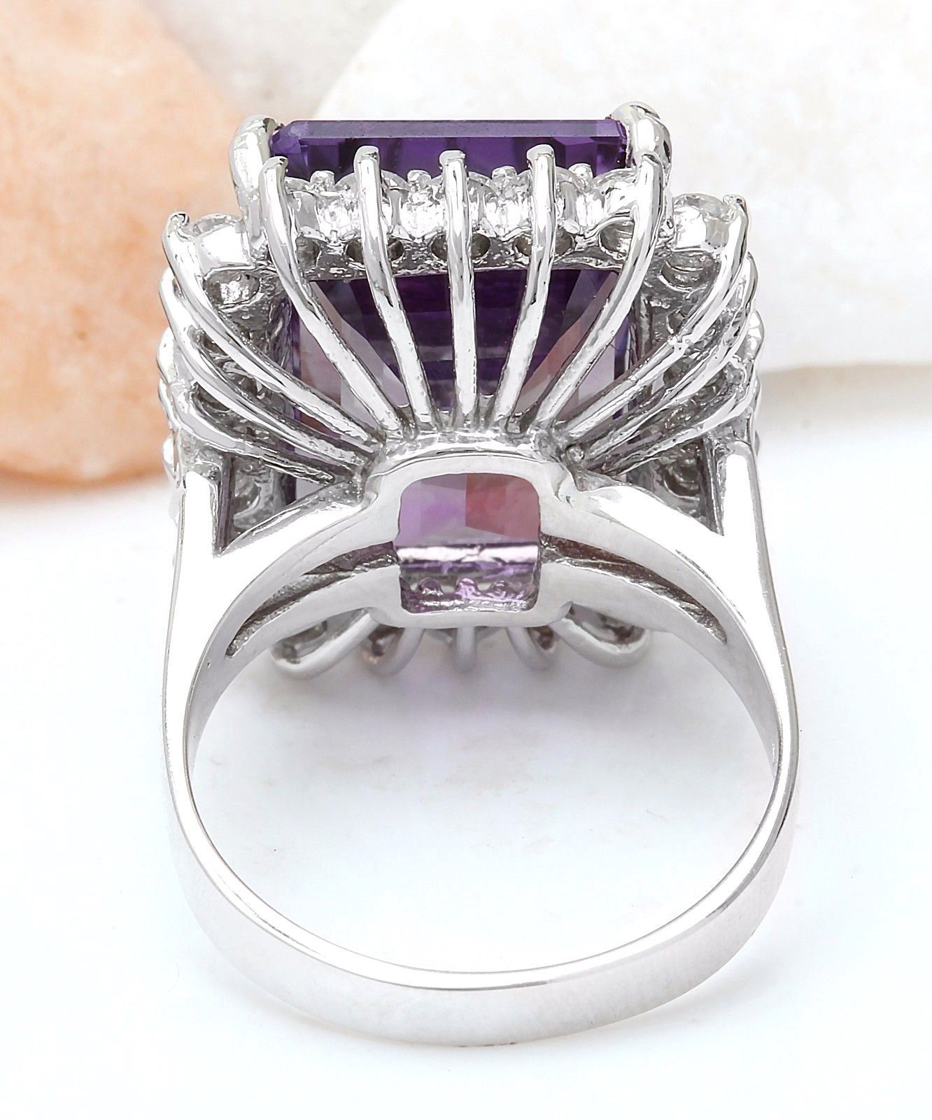 14.20 CTW Natural Amethyst 18K Solid White Gold Diamond Ring