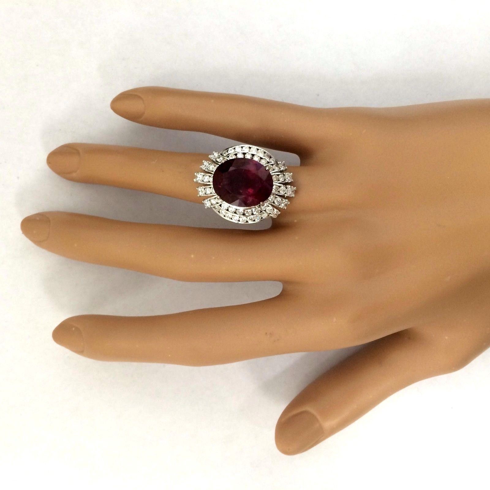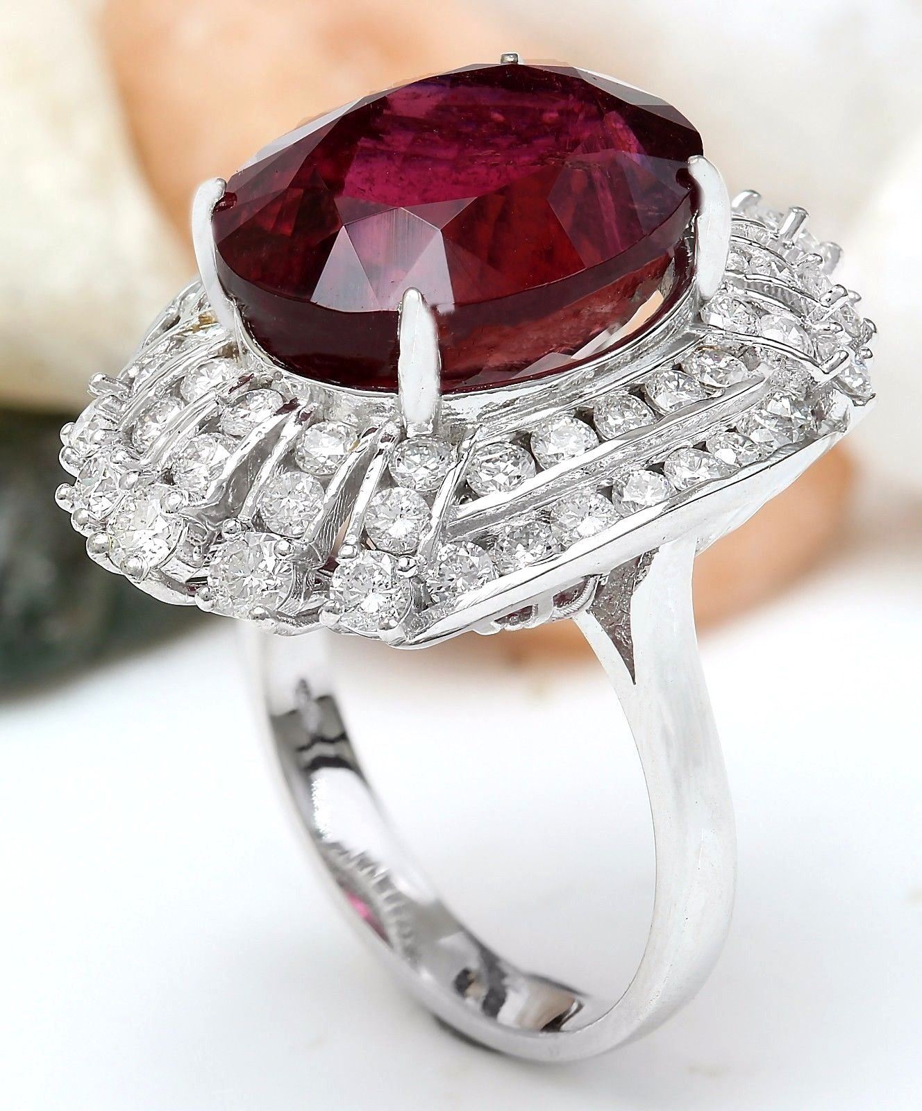 14.20 Carat Natural Tourmaline 18K Solid White Gold Diamond Ring