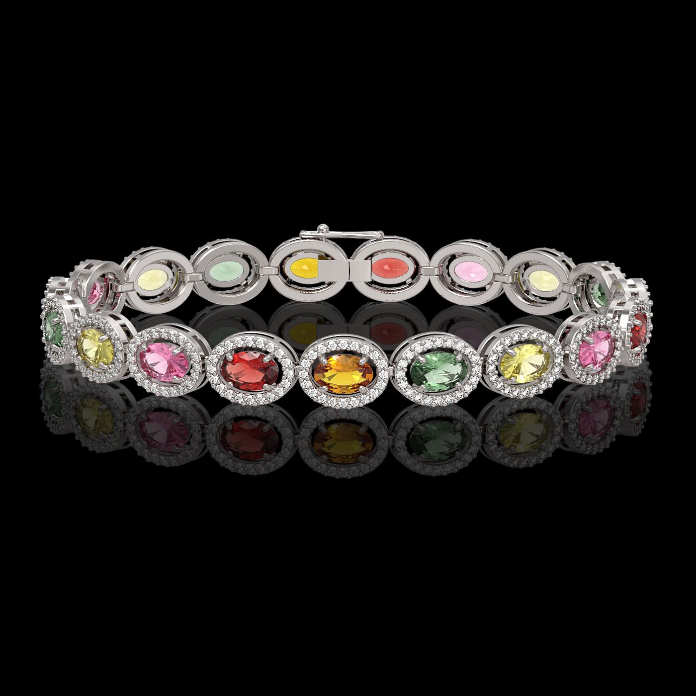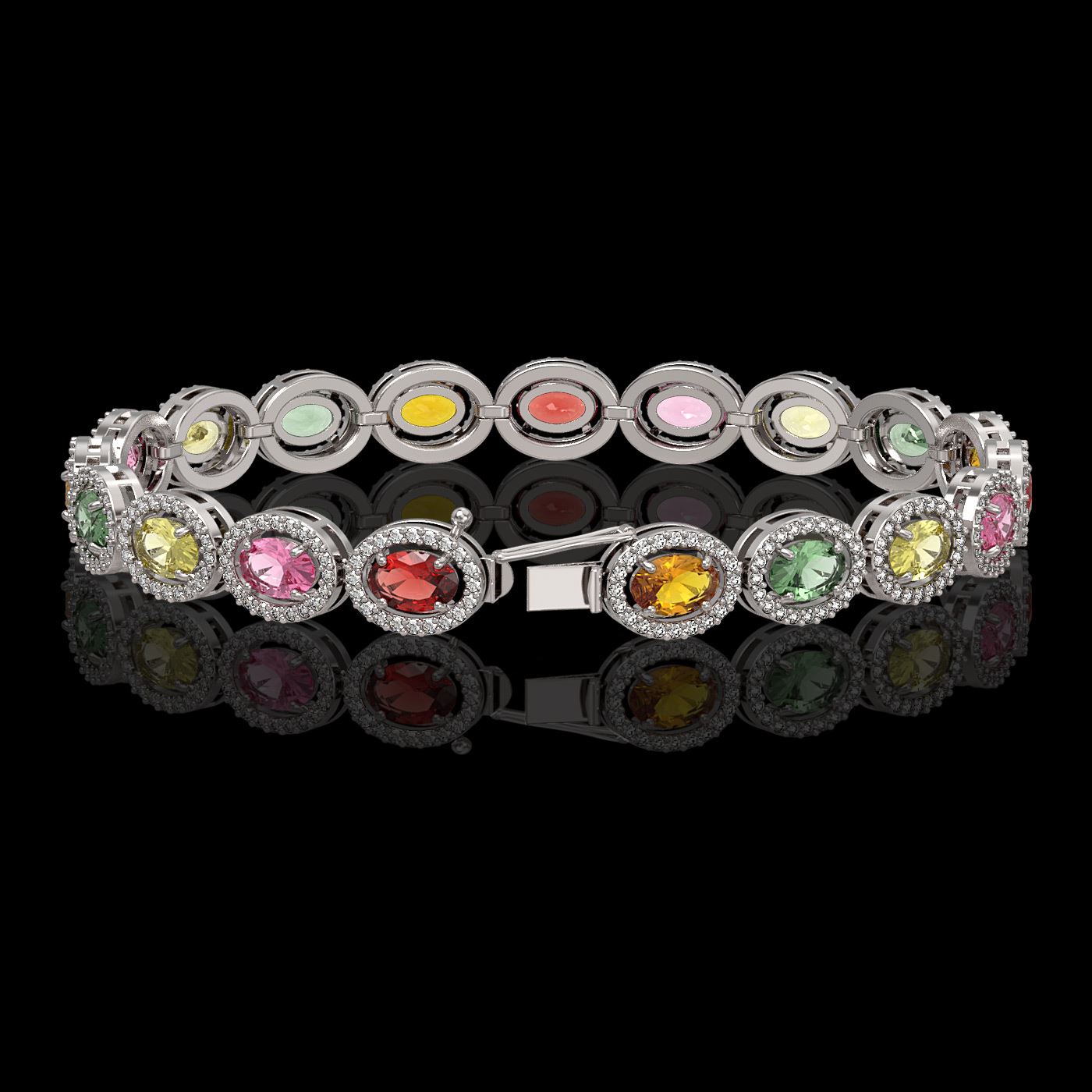 14.25 ctw Multi Color Sapphire & Diamond Bracelet 10K White Gold