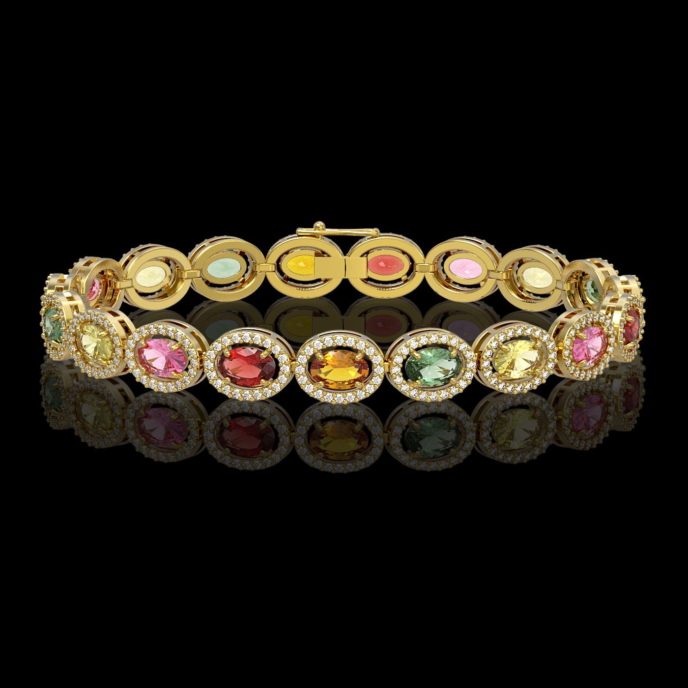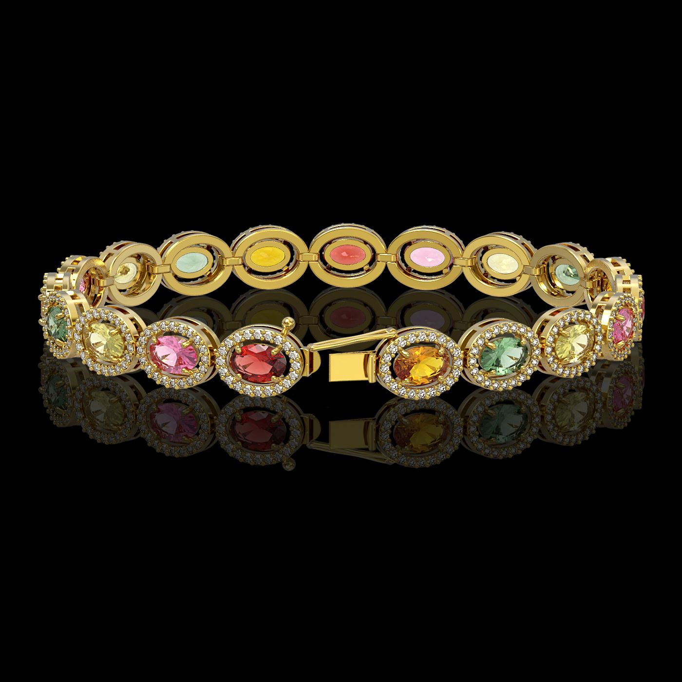 REF-304K5Y - SKU: 40501 ---- 14.25 ctw Multi Color Sapphire & Diamond Micro Pave Bracelet 10k Yellow Gold